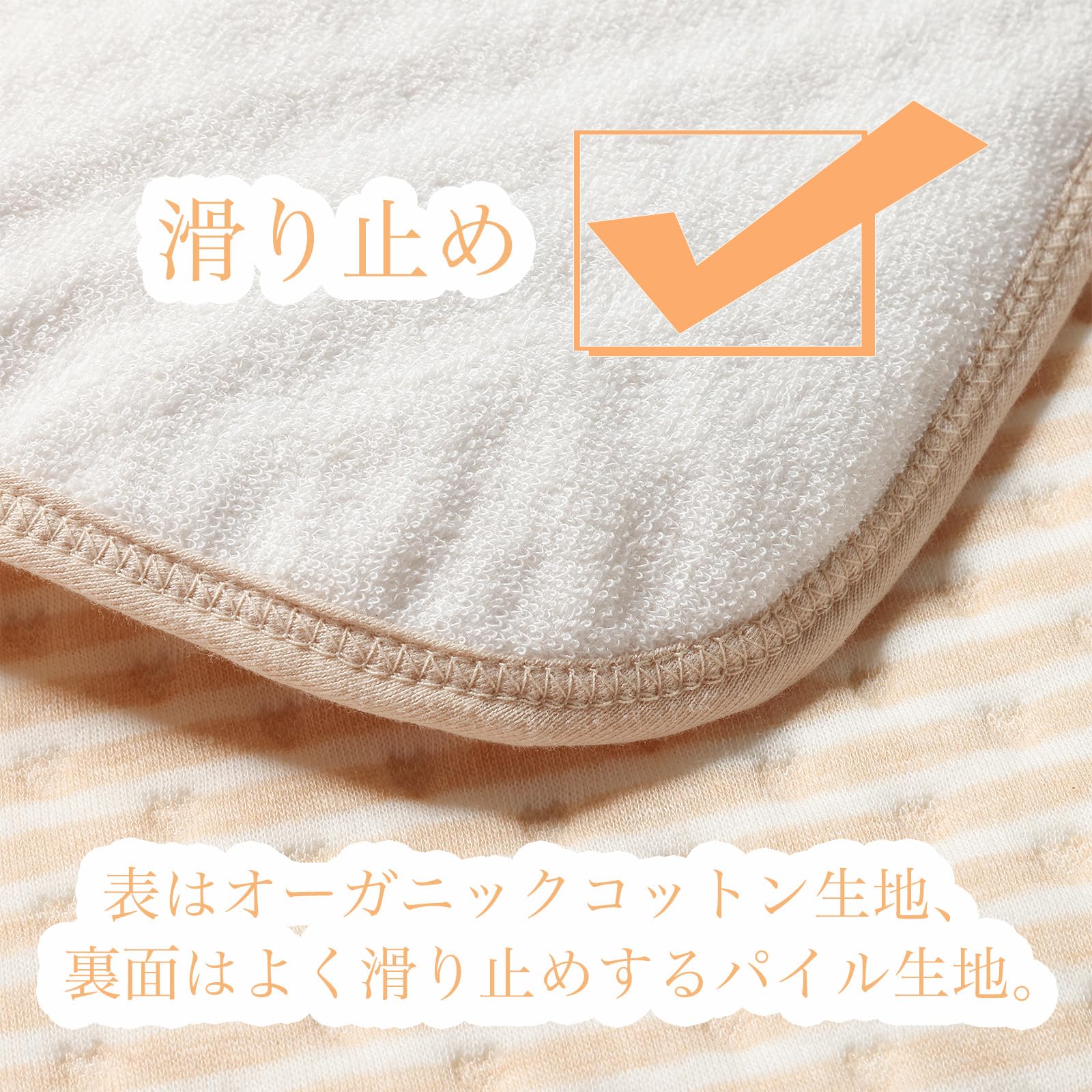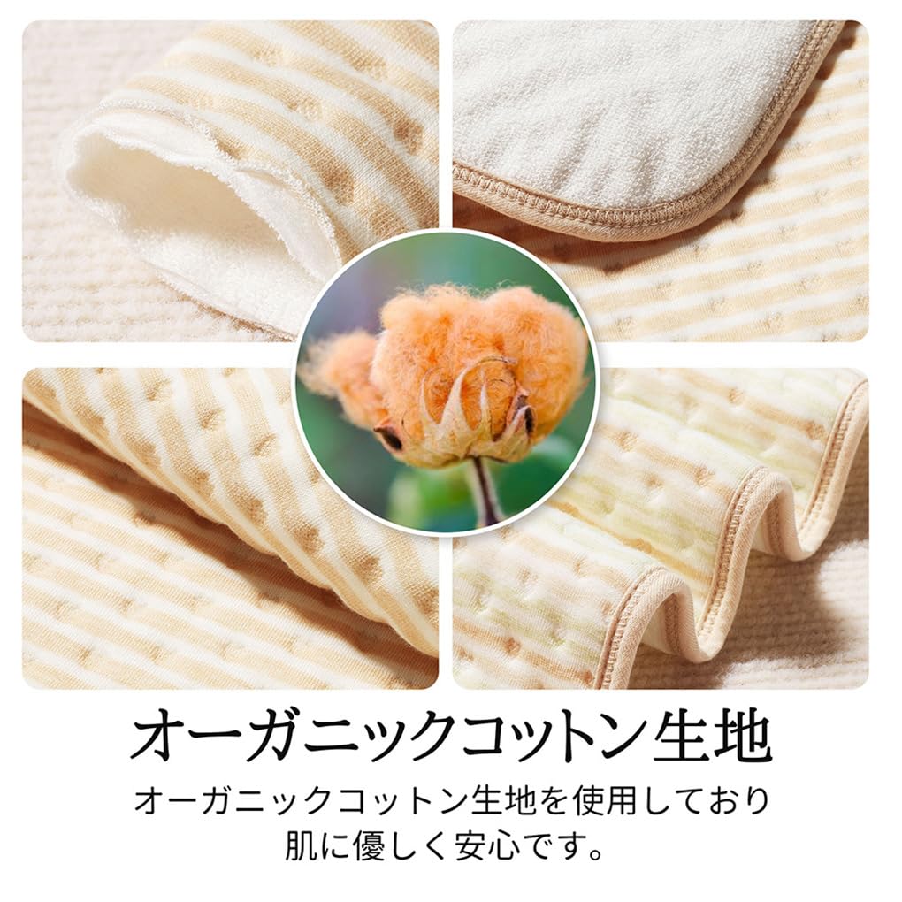 オーガニックコットンを使用しており、肌に優しく、通気性と吸水性に優れています。