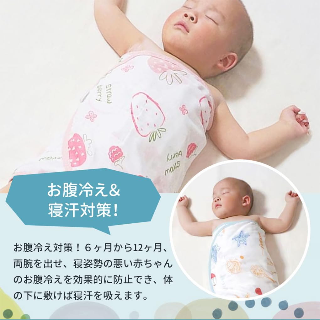 お腹冷え対策!6ヶ月から12ヶ月、両腕を出せ、寝姿勢の悪い赤ちゃんのお腹冷えを効果的に防止でき、体の下に敷けば寝汗を吸えます。