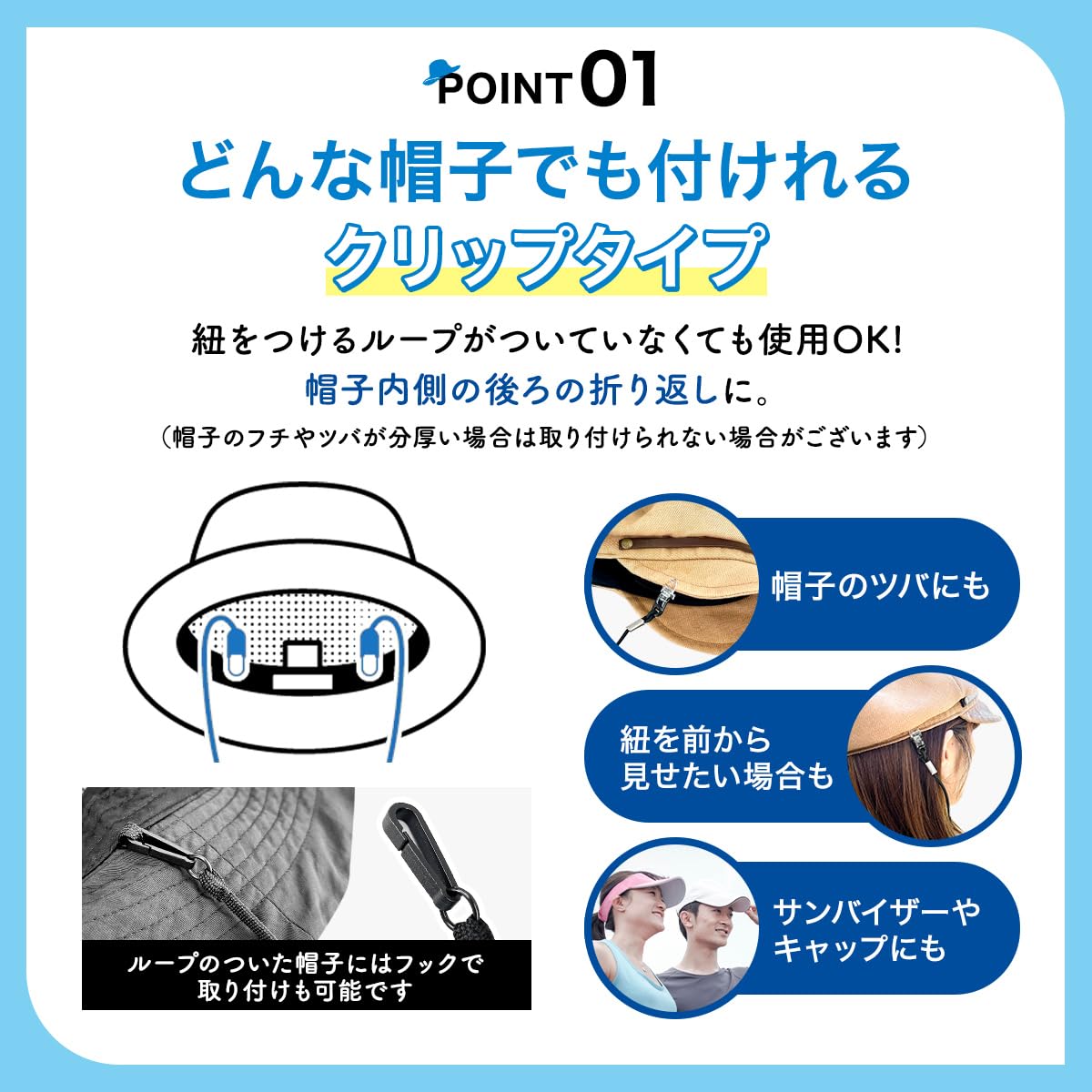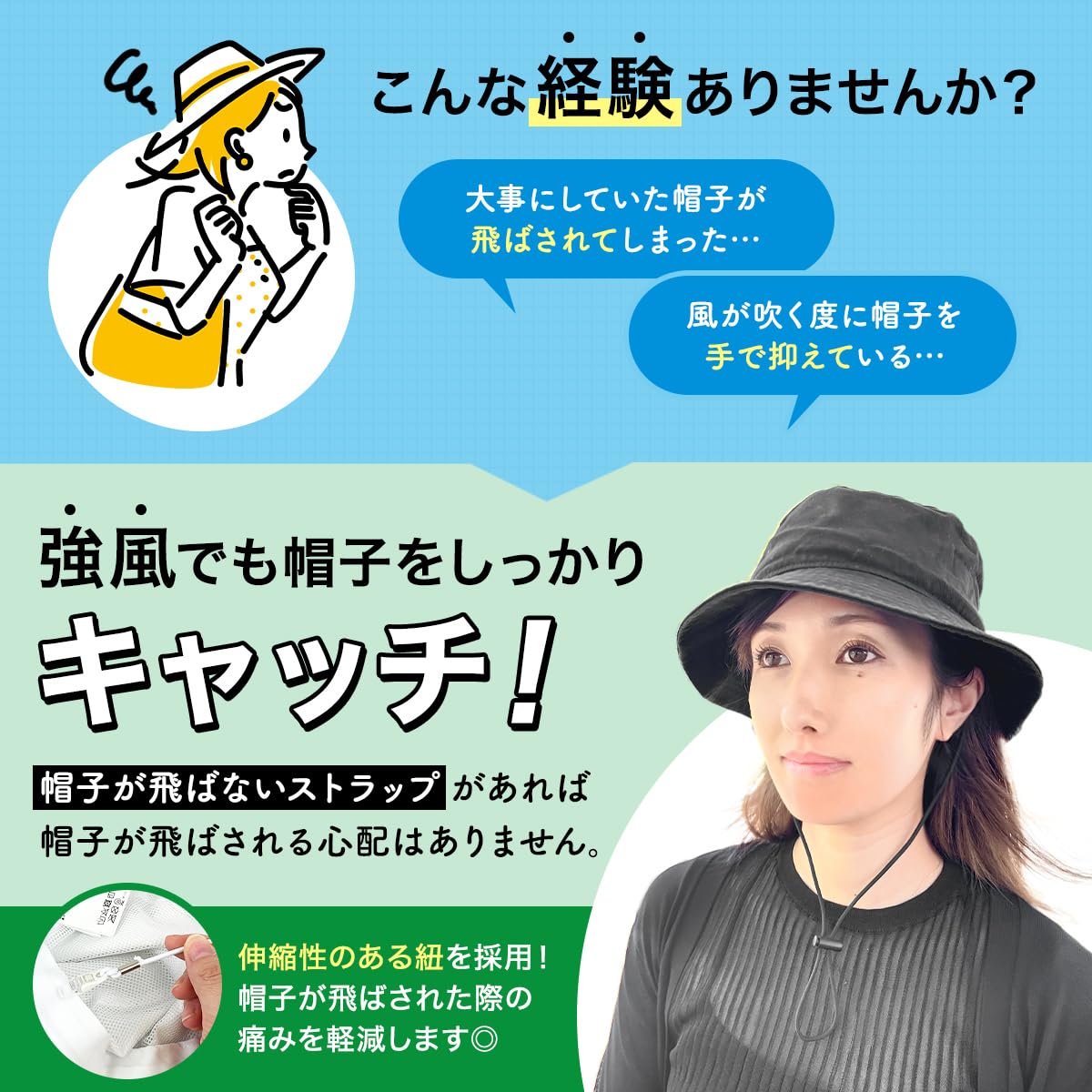 帽子が飛ばないストラップ 帽子 風飛び防止 クリップ (白(ホワイト)) 風などで帽子が飛んでいかないようにできるストラップです。 長さを調整できるので、お子様にもご使用いただけます。 ほとんどの帽子に取り付けが可能です。(帽子のフチやツバが分厚い場合は取り付けられない場合がございます) 製造:日本