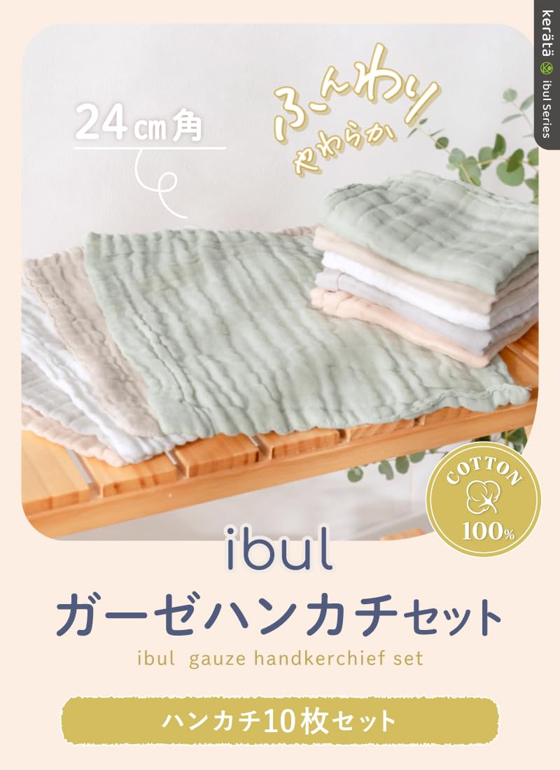 (ケラッタ) イブル ガーゼハンカチ ベビー もこもこ 6重ガーゼ くすみカラー 10枚セット 沐浴ガーゼ 沐浴布 赤ちゃん (ピンク グレー グリーン ベージュ ホワイト)