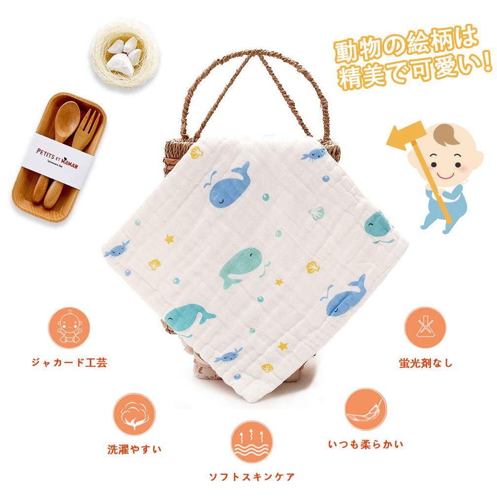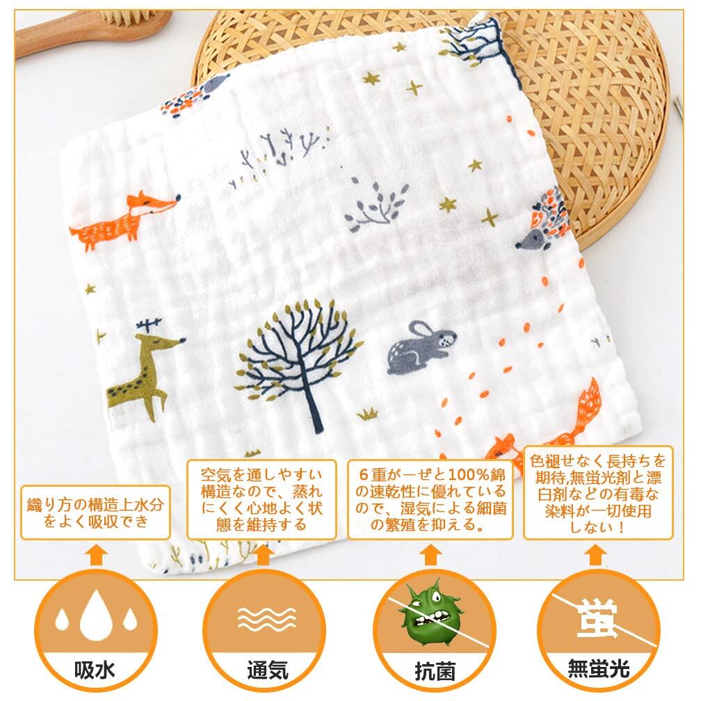 VIAKY ベビータオル 8枚入り ベビービブ ガーゼタオル よだれかけ リバーシブル ガーゼハンカチ ガーゼ6重 綿100% ループ紐付き 速乾 8枚セット 25*25cm 新生児 出産祝い 女の子 男の子 ユニセックス