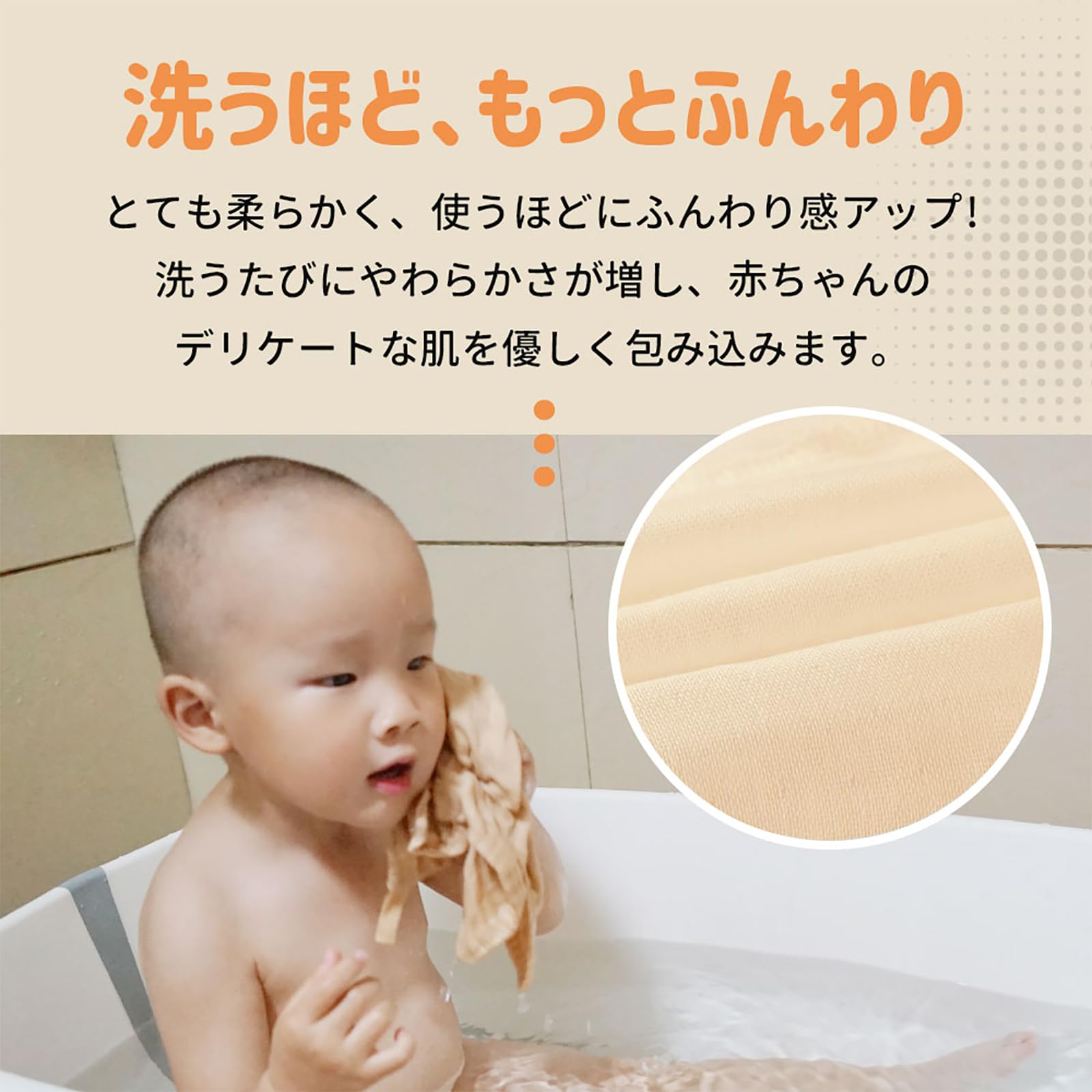 洗うほどに柔らかさが増し、赤ちゃんのデリケートな肌を優しく包み込みます。