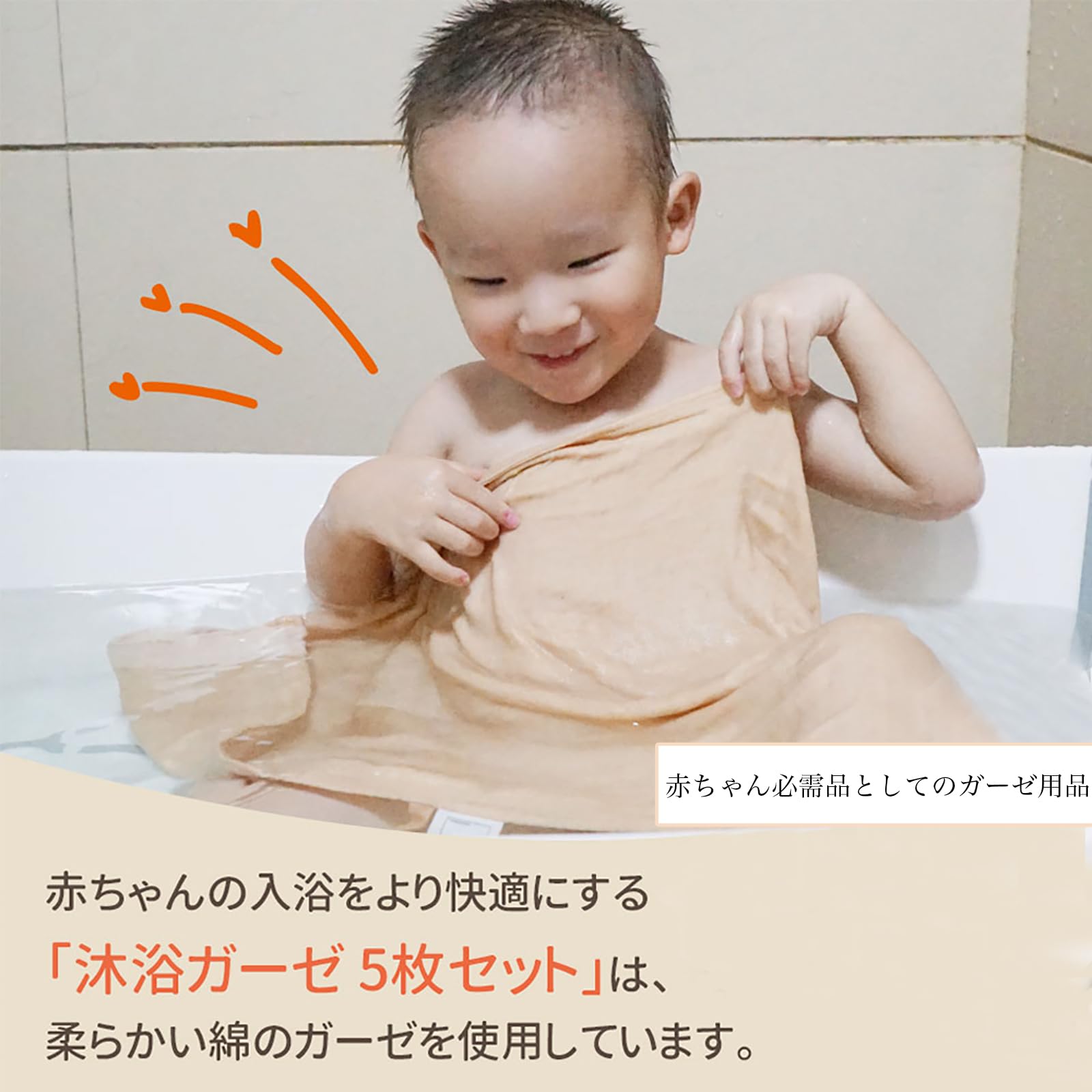 沐浴ガーゼは、赤ちゃんの肌に優しいオーガニックコットンを使用したダブルガーゼの5枚セットです。