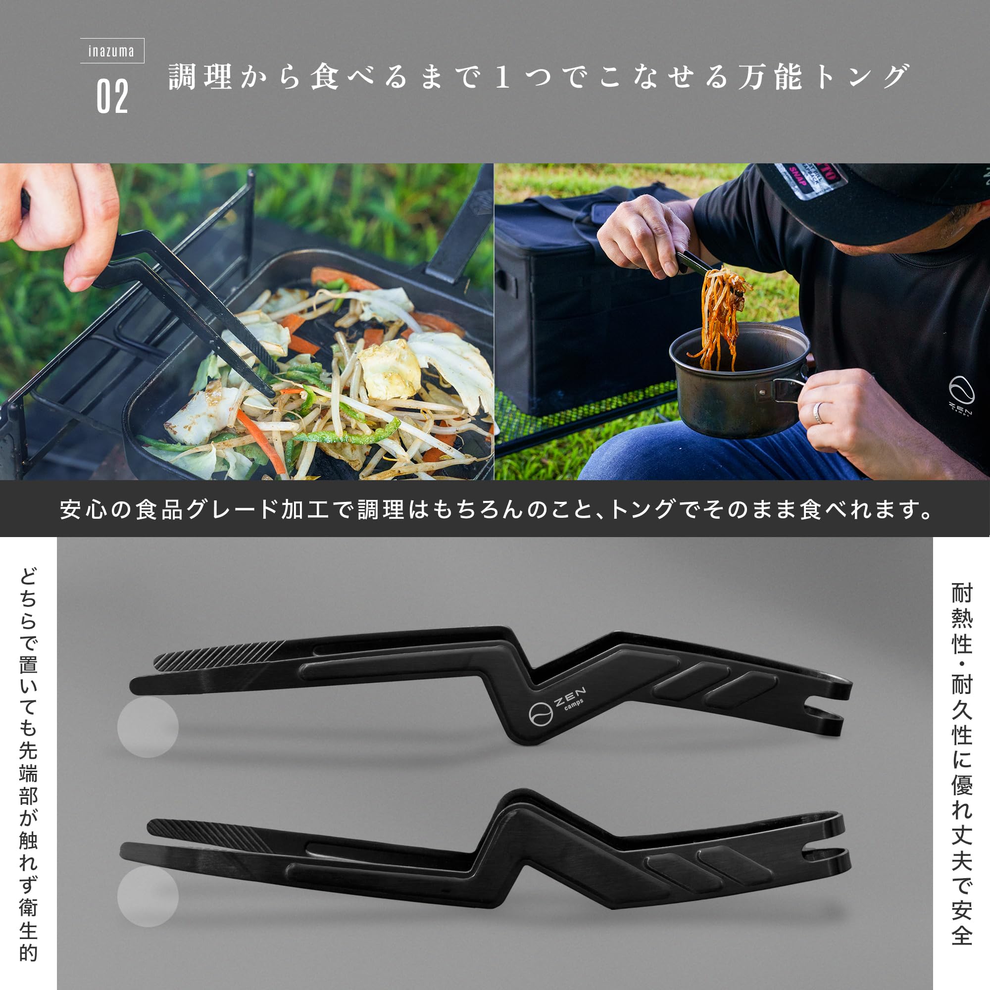 キャンプやバーベキュー時の調理から食事まで1つでこなせる万能な「いなずまトング」。調理用トングとしても、箸や菜箸の代わりとしてもお使い頂けます。キャンプ時はこれ一本で調理から食事まで対応可能です。