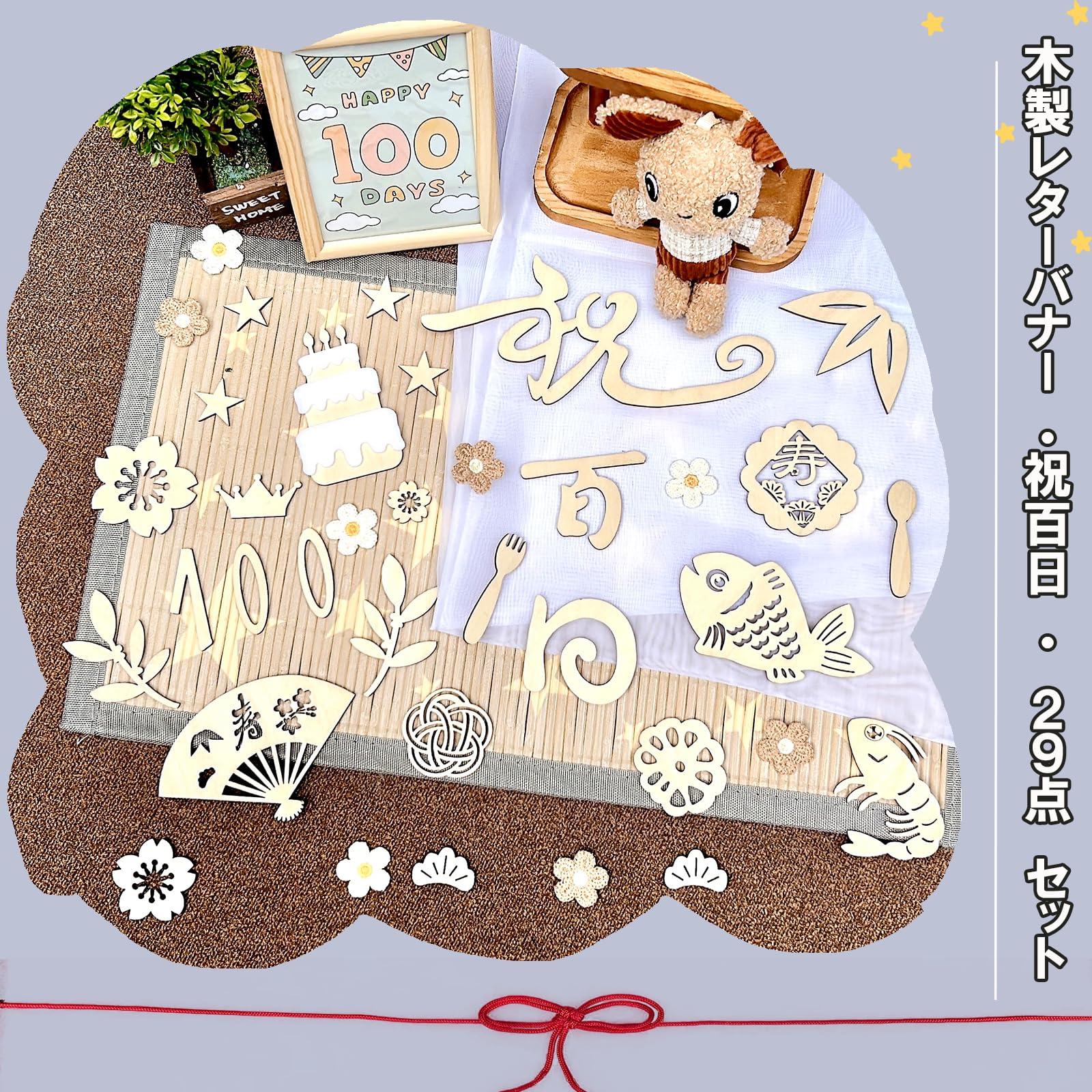 祝百日 29枚 レターバナー 木製 お食い初め ウッドバナー 100日 赤ちゃん 飾り ウッドレター ナチュラル お祝い (a1)