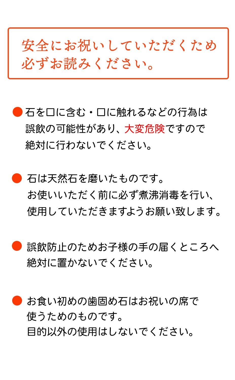 ・石はお食い初め用のものです。必ず煮沸消毒してからご使用下さい。お子様の誤飲にもご注意ください。