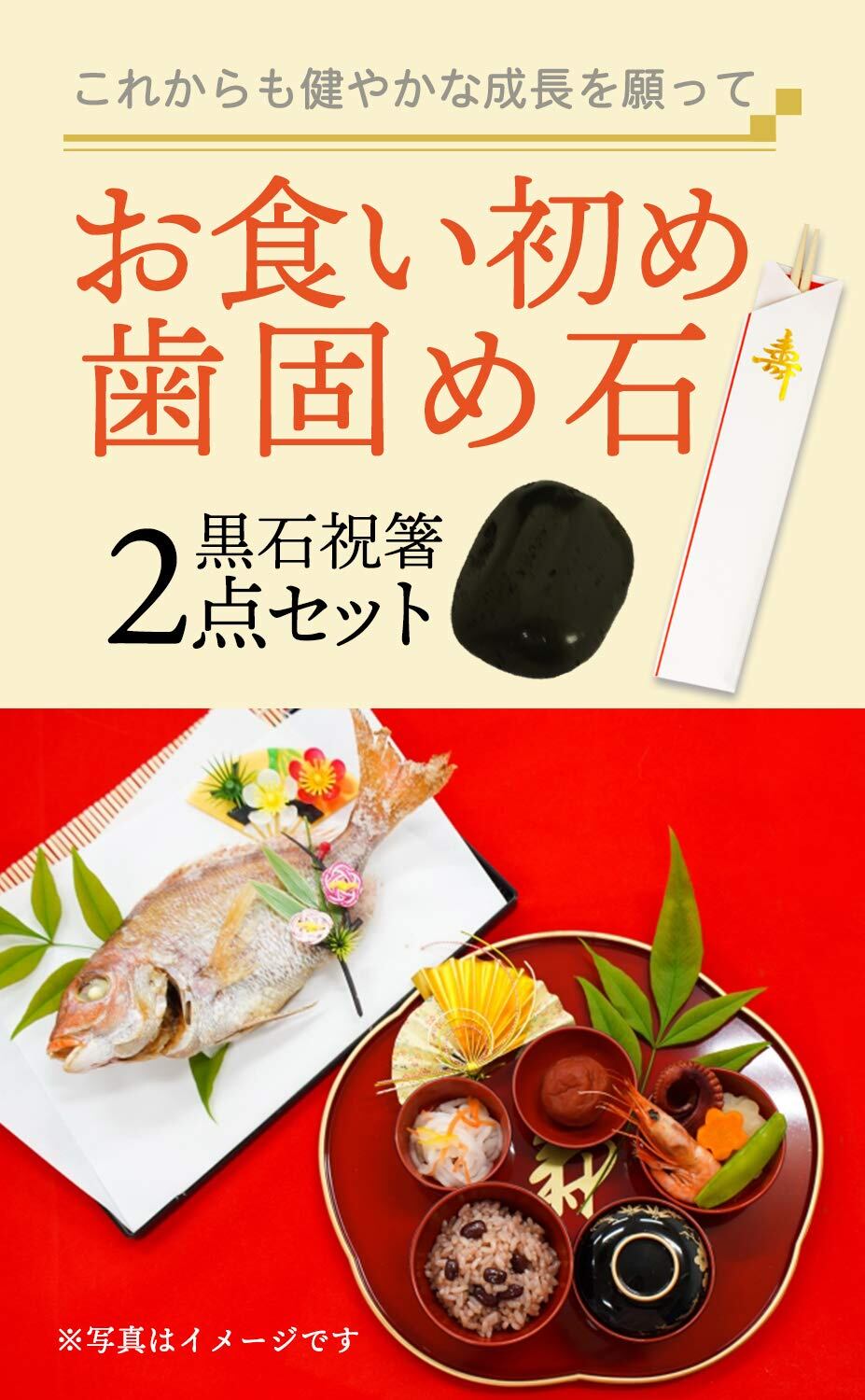 歯固めの石 お食い初め 儀式用 歯固め石 黒石祝箸セット 石 (黒石+祝箸)