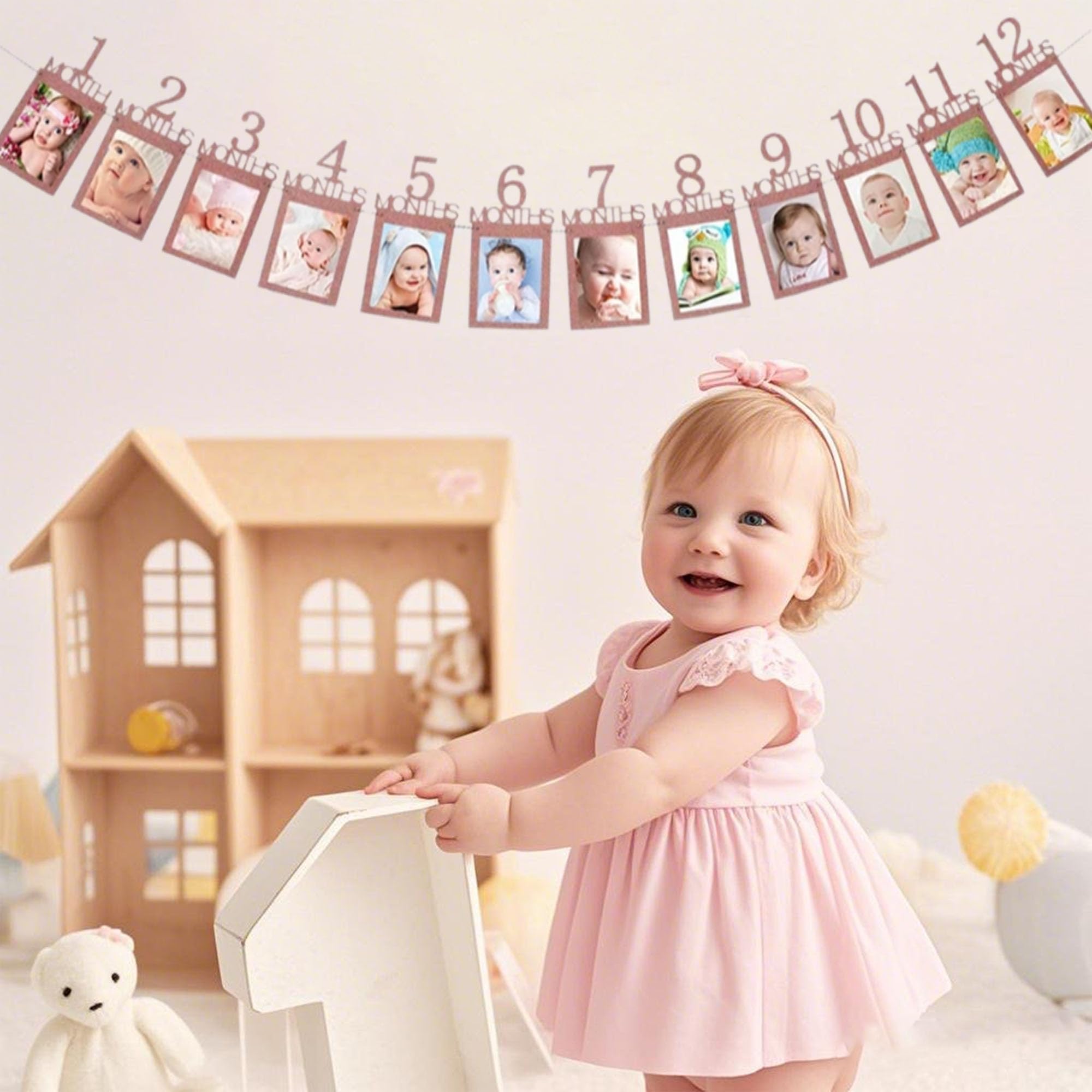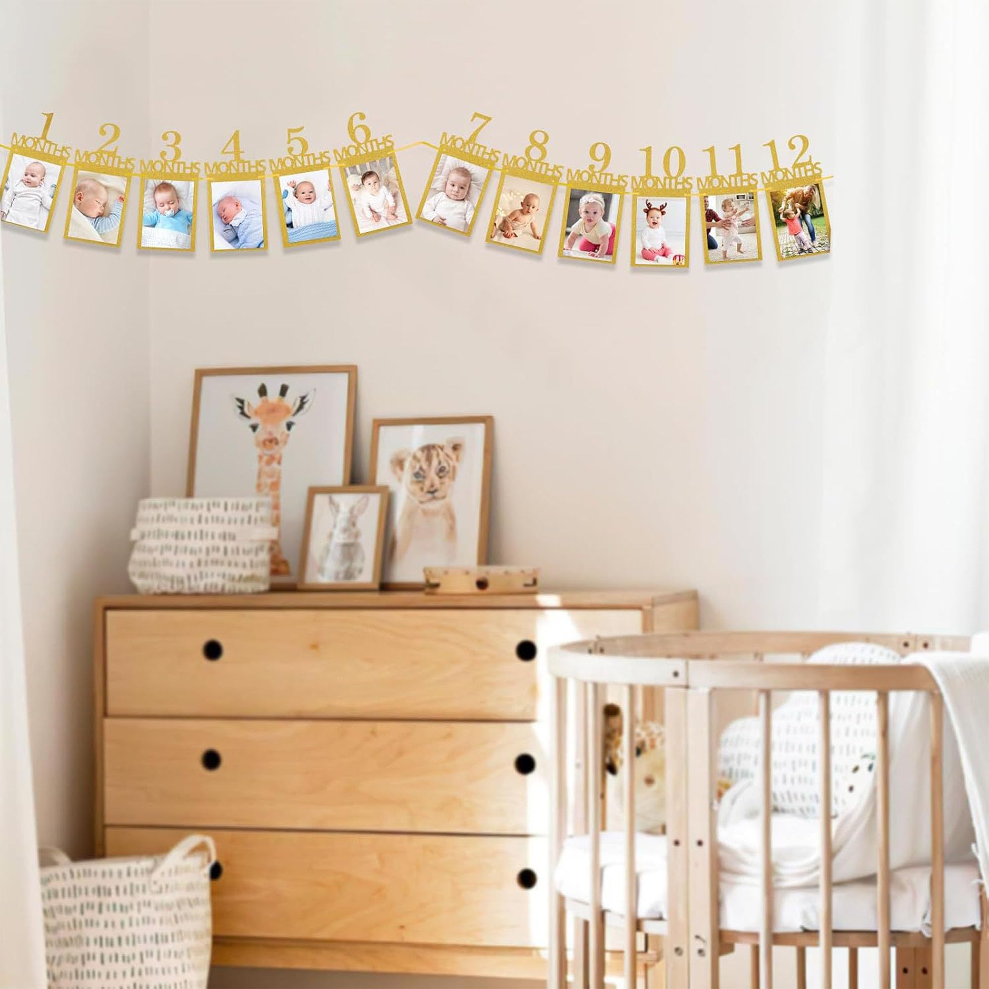誕生日 フォトガーランド フォトフレーム 飾り付け 12ヶ月 1歳記念 写真フレーム 壁掛け バースデーパーティー装飾 赤ちゃん 結婚式 記念日 お祝い用(金色)