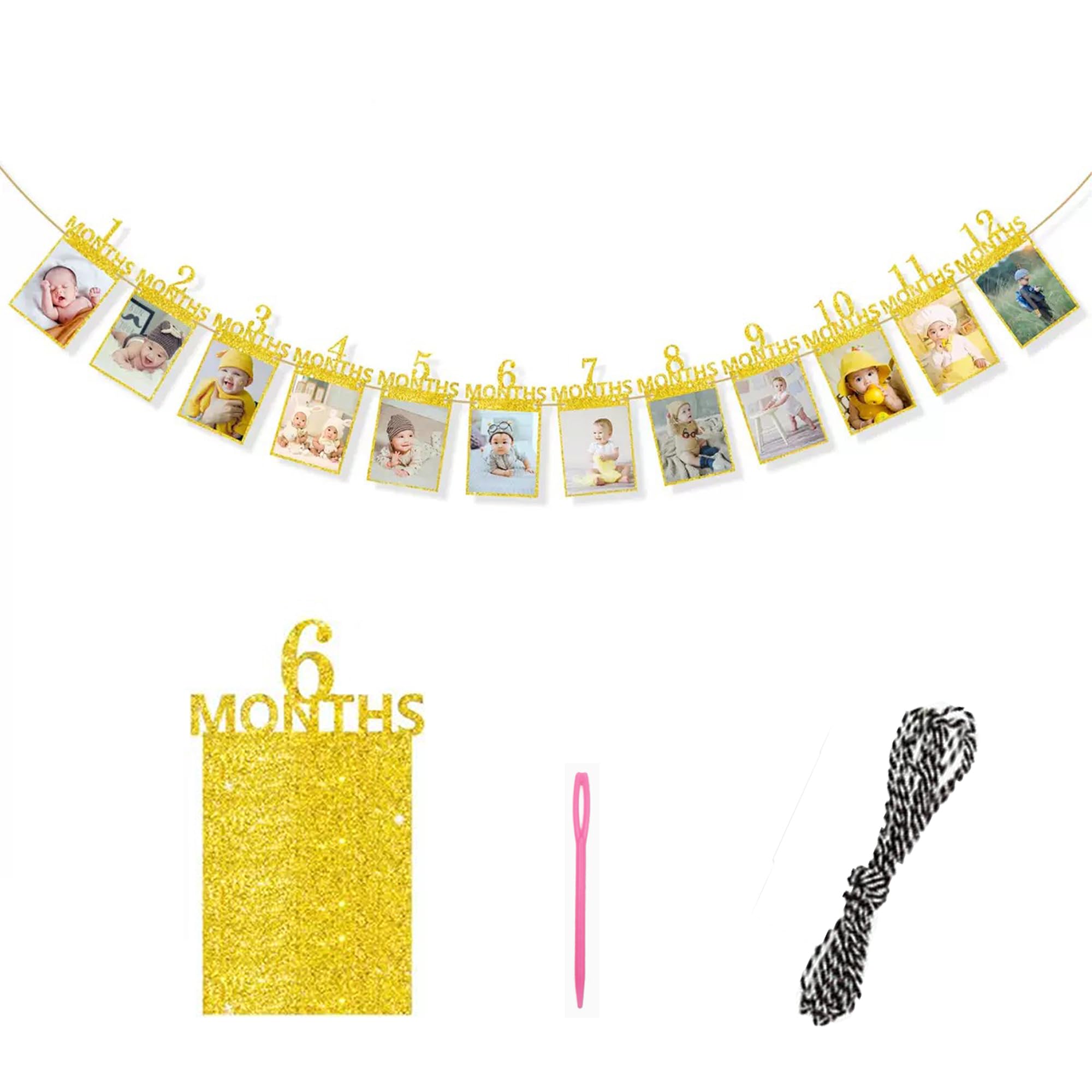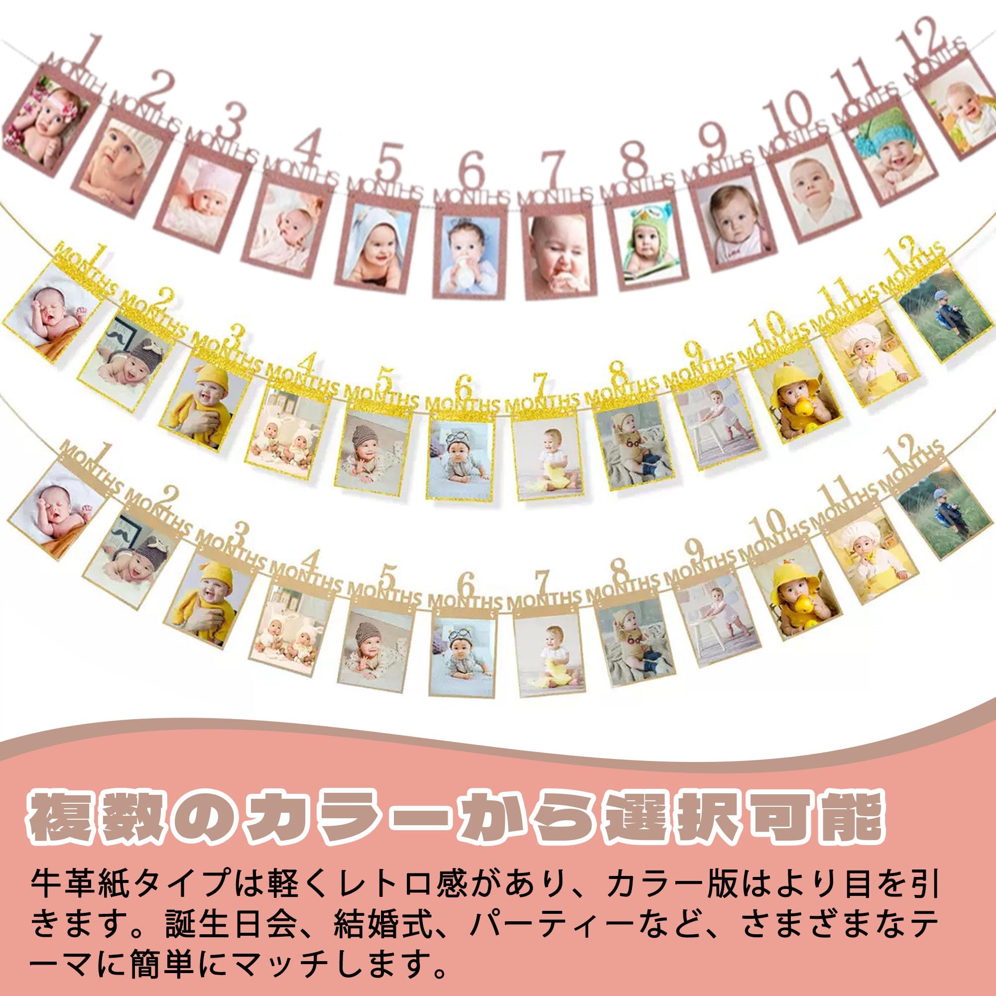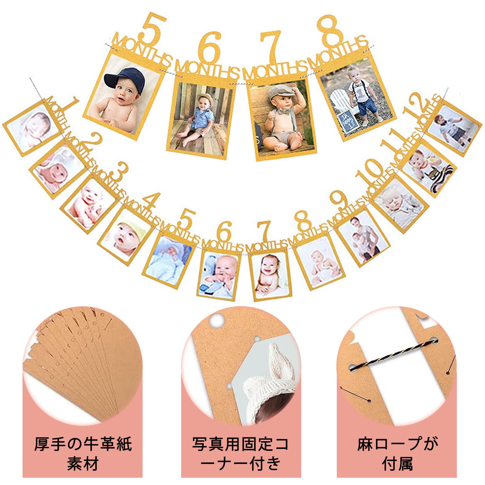 【新着特価】誕生日 フォトガーランド フォトフレーム 飾り付け 12ヶ月 1歳記念 写真フレーム 壁掛け バースデーパーティー装飾 赤ちゃん 結婚式 記念日 お祝い用(金色)