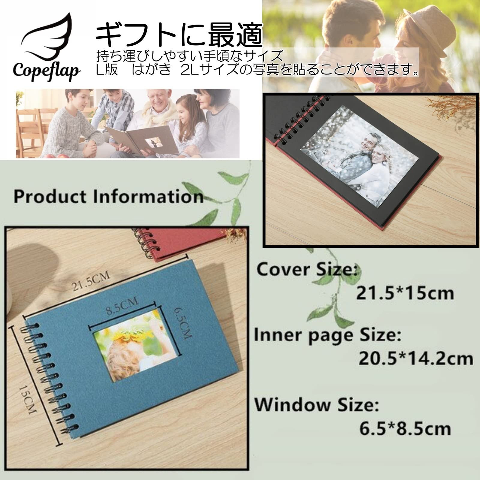 表紙カラー:レッド(落ち着いた赤色) クラフト(ベージュ〜茶色) グレー(薄い黒色) ダークブルー(暗めの青色) ライトブルー(明るめの青色) ベビーブルー(薄い水色) ベビーピンク(薄いピンク) パープル(薄い紫色) 内ページ カラー:ブラック 商品内容:1冊 サイズ(約):15*21.5cm(およそA5サイズ) 内ページ:14.2*20.5cm 内ページ数:20枚 写真用コーナーシール1枚付属