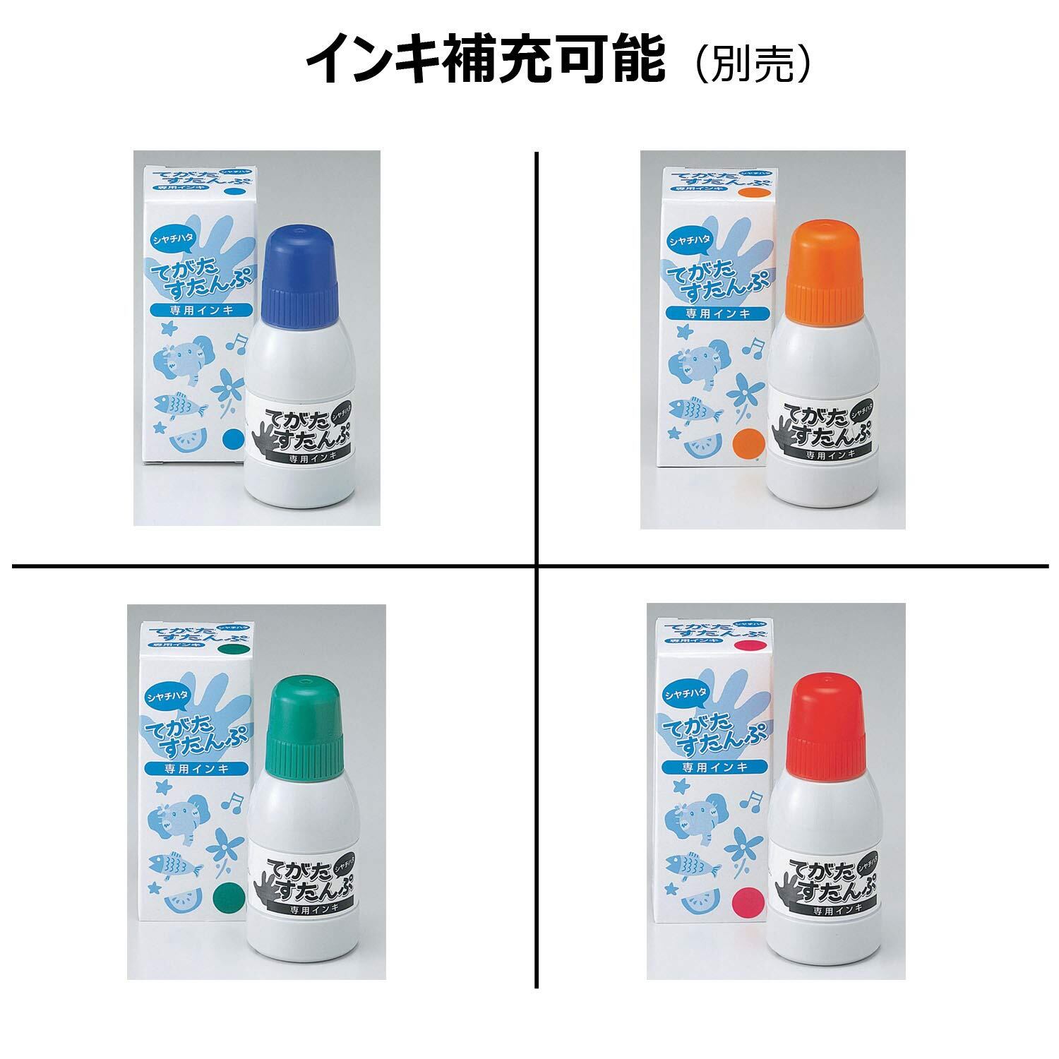 シャチハタ てがたすたんぷセット グリーン HT-AS-G 【インキ色】グリーン 【インキ種類】水性顔料 【セット内容】専用スタンプ台、専用インキ 【捺印回数】約300回 【仕様】ST基準に適合 布にも捺せる特殊インキと大型スポンジパッドのセット。色紙、アルバムなどの紙や、布にもくっきり捺せる特殊インキを採用。布に捺した場合、アイロンをかければインキが定着し、洗濯をしても落ちにくくなります。