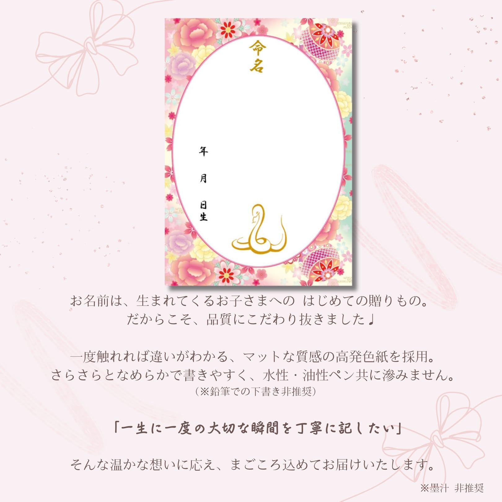 【人気】《命名紙3枚セット》毬と牡丹 桃色 令和7年(2025年)干支 巳入り A4和風命名用紙 万が一の書き損じにも安心の3枚入 額なし 優しいパステルカラー 令和7年生まれのお子様にぴったりな干支の蛇入りデザイン 命名書 命名紙 お七夜 出産祝い 命名式 縁起の良い毬と牡丹 ご縁を結ぶリボンが華やかな命名用紙 日本製 MMS110-T