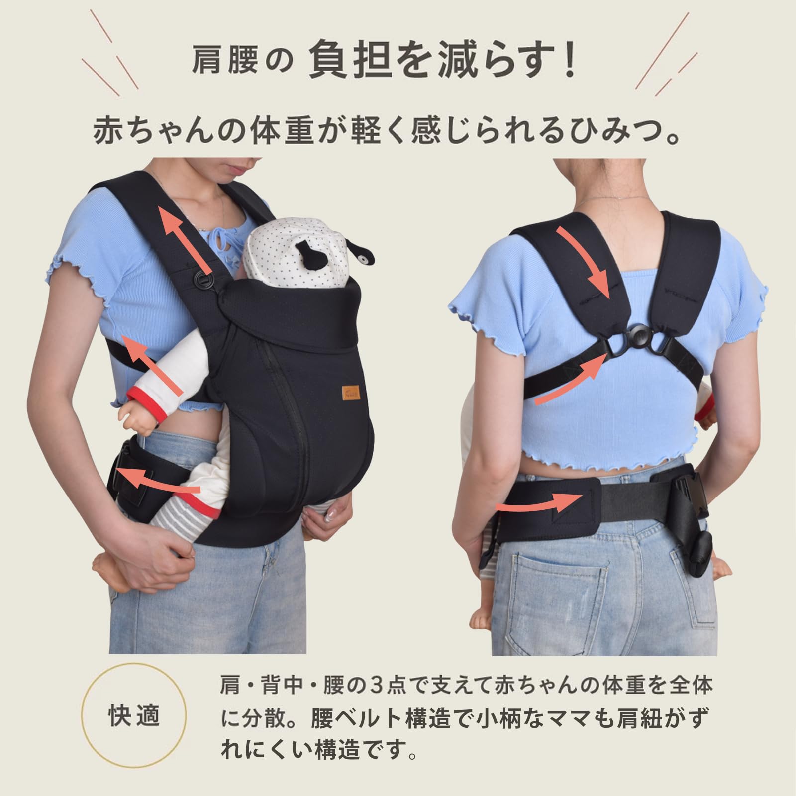 【負担軽減 2重で安心】腰ベルトがついて、新生児の重力を腹部や腰や肩に均等に分散し、3点のバランスに重力を受け、長く使うからママの頸椎と腰椎を守ります。腰ベルトと蝶結びは装着しやすい。安定感満々のベビースリングです。