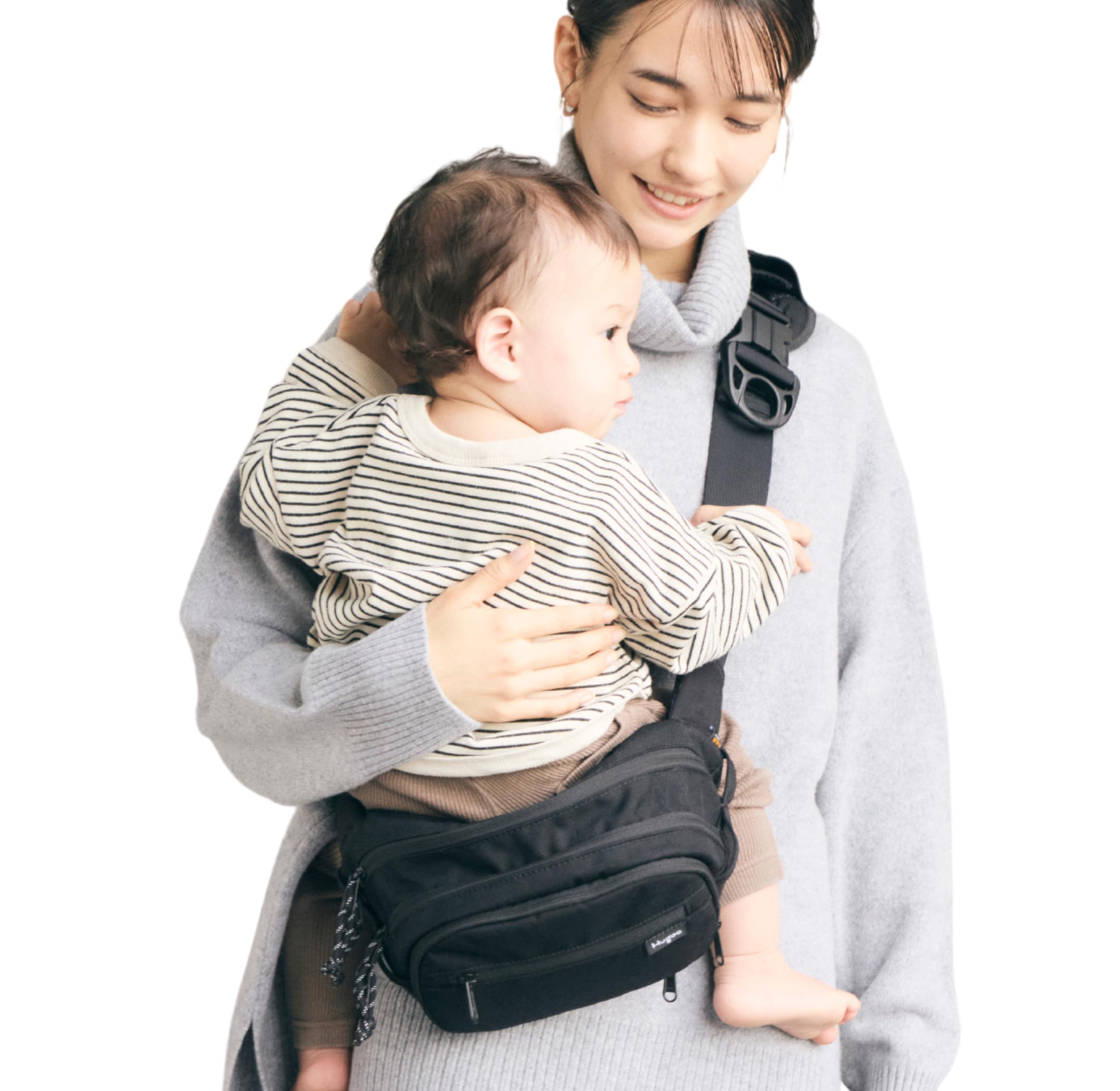 【デザイン賞多数受賞&パパママ兼用】 グッドデザイン賞・キッズデザイン賞・海外デザイン賞を受賞。ユニセックスで洋服に合わせやすく、パパも使いやすいショルダーバッグ型ヒップシート。