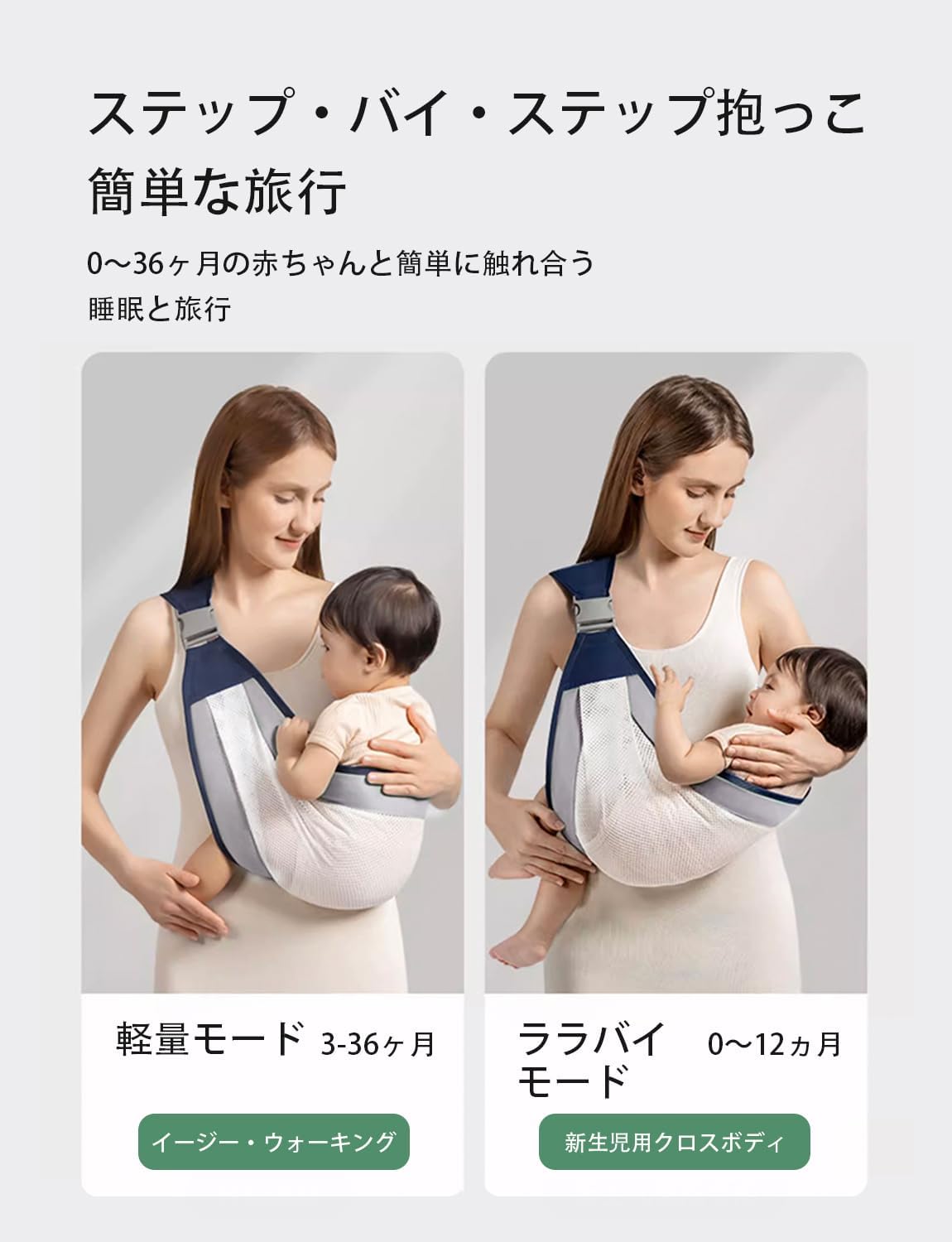 【持ち運びが簡単】当社の新生児用ベビーキャリアは、コンパクトで軽量に設計されており、どこにでも持ち運ぶことができて便利です。 小さく折りたたんでバッグやスーツケースに入れられるので、場所を取りません。 ご自宅でも、公園でも、旅行先でも、簡単にお使いいただけます。