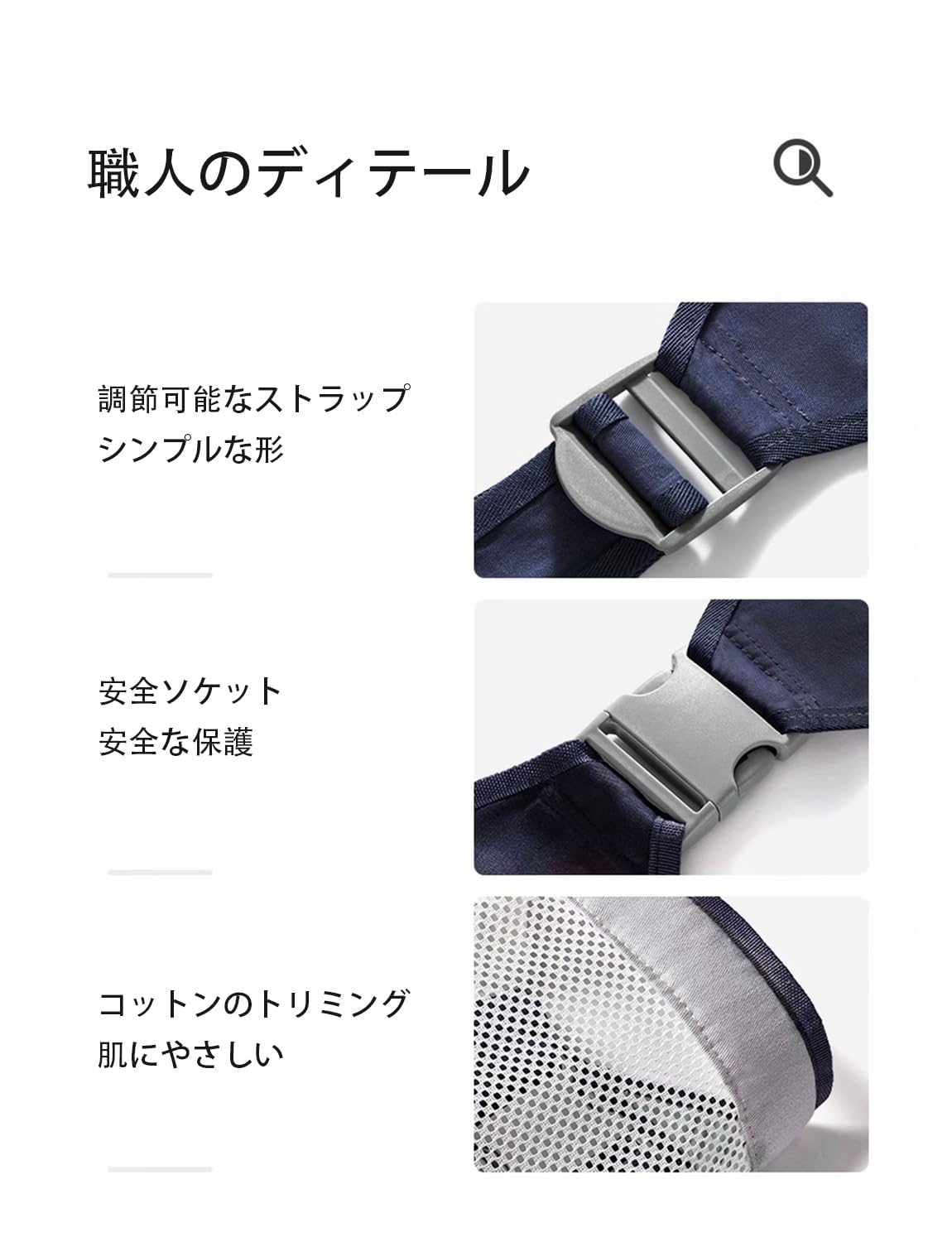【安全性と信頼性】 赤ちゃんの安全を第一に考えています。 当社のキャリアは厳しい品質検査を受け、国際的な安全基準を満たしています。 キャリアの調節可能な安全バックルにより、赤ちゃんは常に安定した状態で安全に抱っこすることができます。