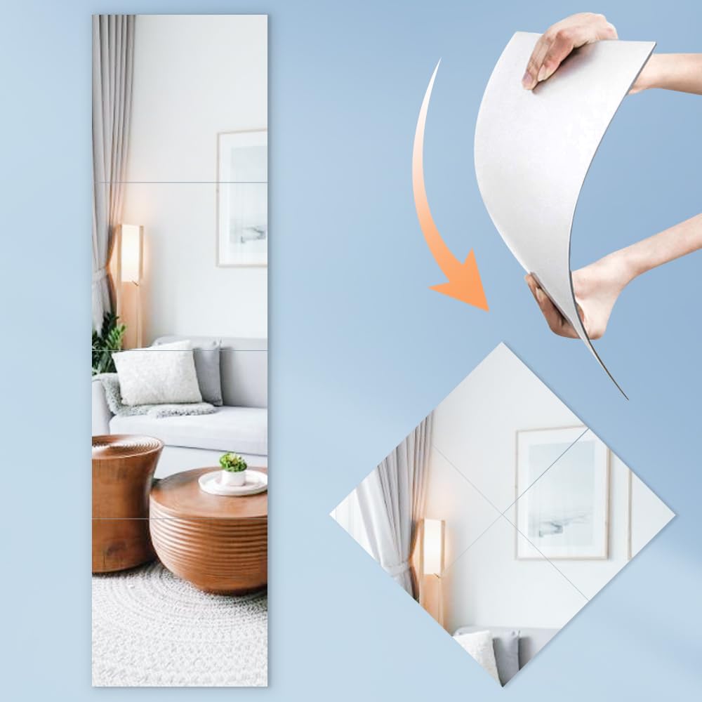 【在庫のみ】割れない鏡 壁掛け鏡 28*28cm 4点セット DIY可能 貼る鏡 アクリル製 インテリア ミラーシート 設置簡単 便利 軽量 全身鏡 姿見鏡