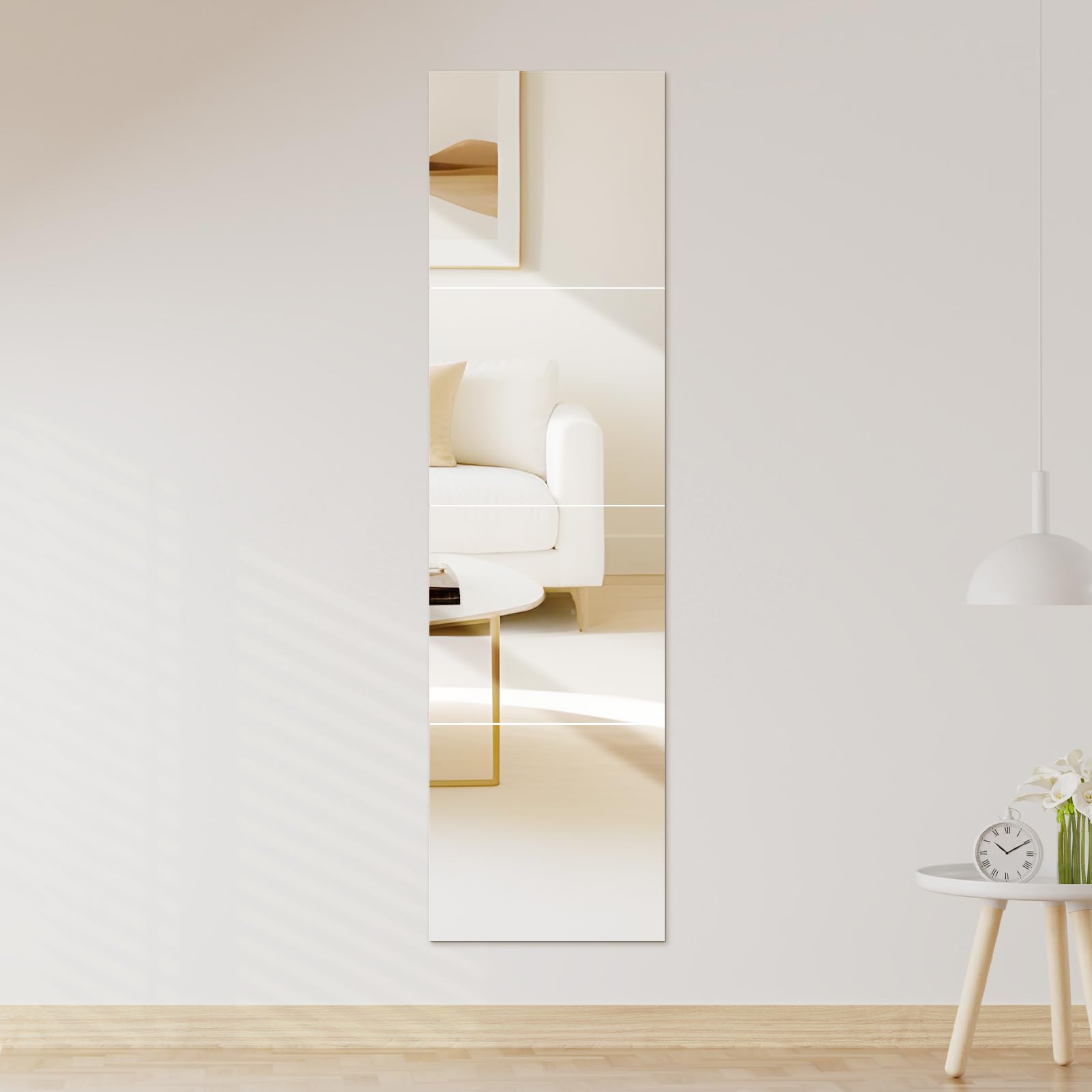 【在庫処分】全身鏡 壁掛け 貼る鏡 割れない鏡 軽量 姿見鏡 鏡 穴あけ不要 アクリル ミラー 浴室 風呂 便利 自由に組み合わせ可能 (30cm*28cm*4枚)