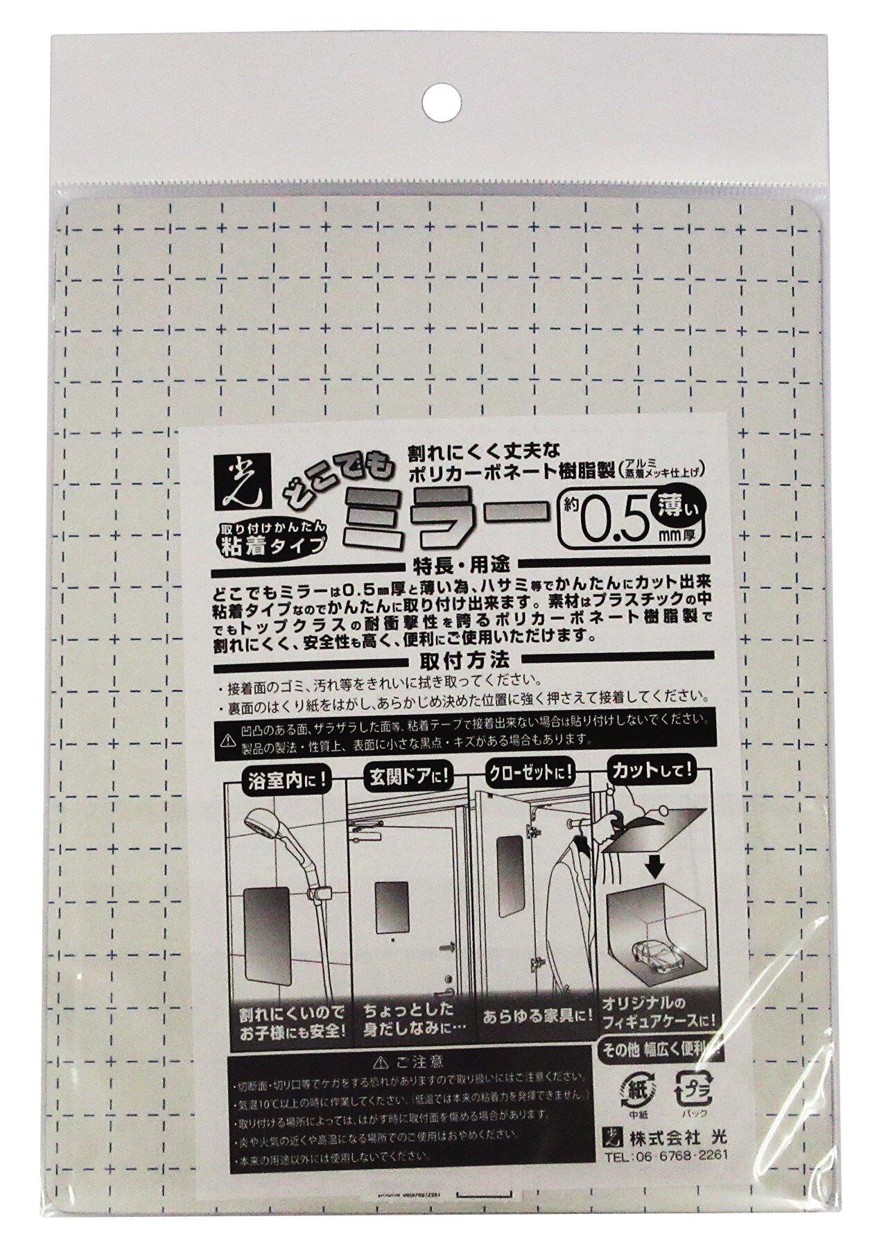 【在庫のみ】光 ウォールマウント どこでもミラー 粘着付 鏡 147×195×0.5mm DKM-1419