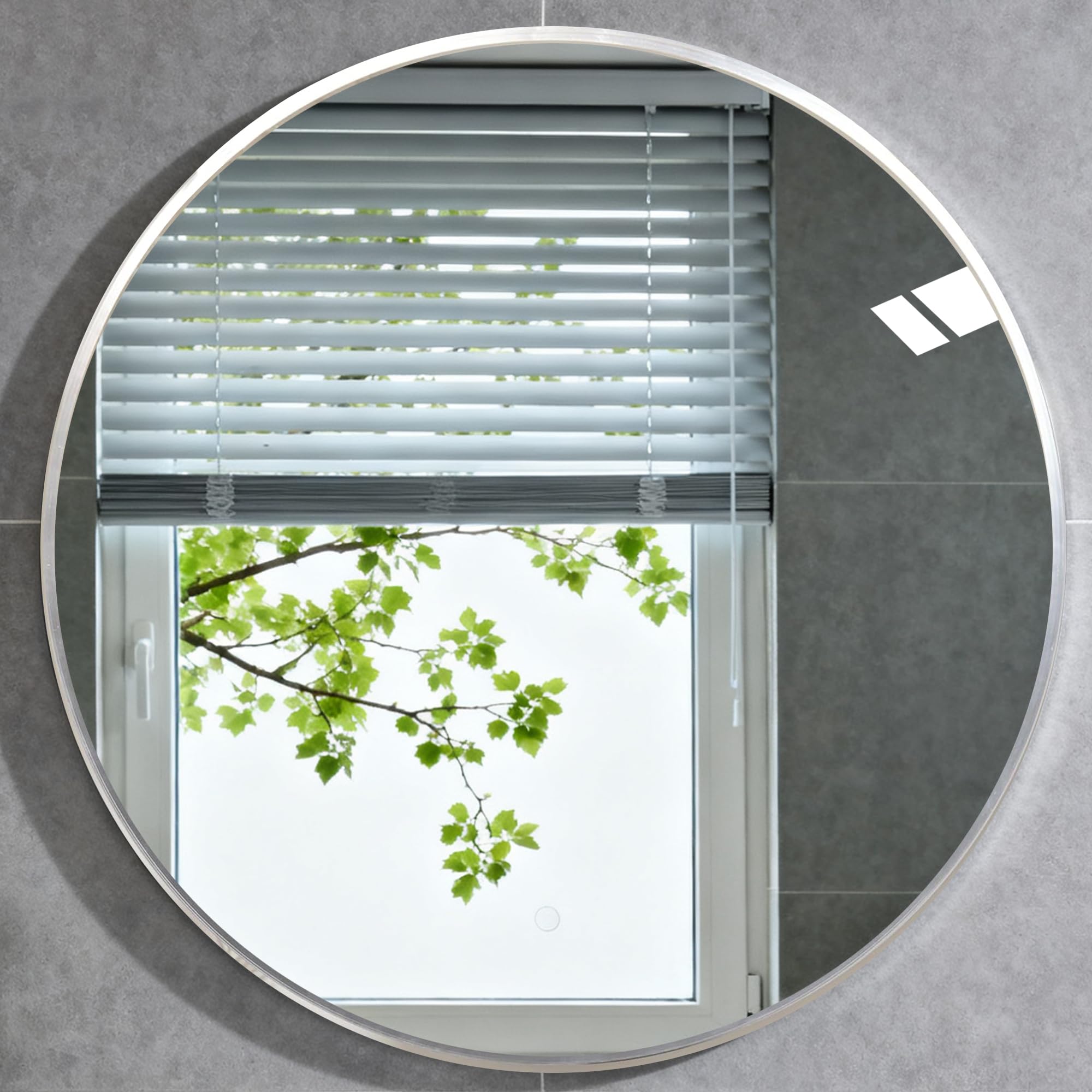 壁掛け鏡 丸 円形ミラー 壁掛けミラー バスルーム鏡 ウォールミラー 金属フレーム 化粧鏡 玄関 洗面 トイレ (シルバー 直径50cm)