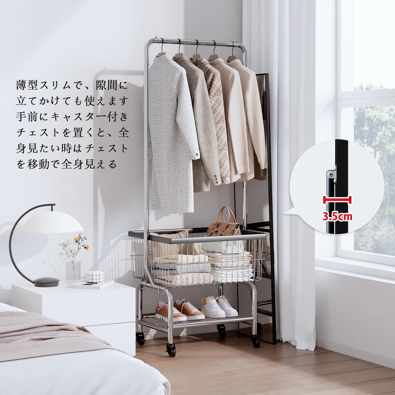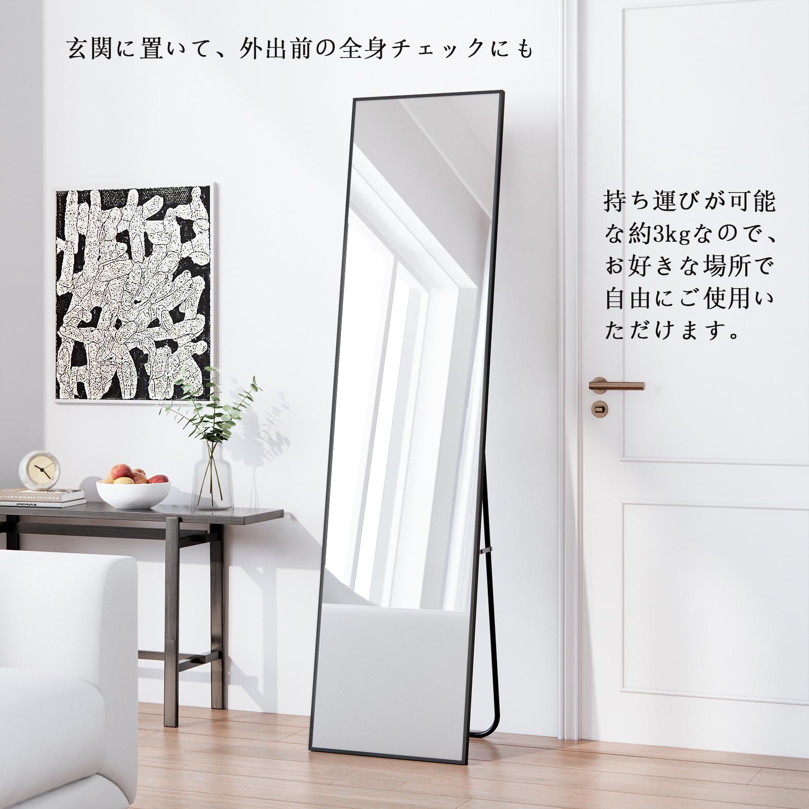 【簡単に移動・設置可能】全身鏡は軽量で持ち運びやすく、家具の配置が頻繁に変わる家庭に適しています。住所変更が必要な場合でも、簡単に持って行くことができます。
