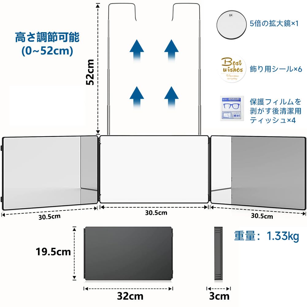 【品質】セット内容: 三面鏡*1、5倍拡大鏡*1。の製品はすべて品質が付きて、何か問題がございましたら、いつでもお気楽ににご連絡お願い致します。お取り扱いが不適切なことなく、故障及び損傷が生じた場合故障品が修理ではなく、直接交換対応できます。不良品・ご不満の場合またはご使用上何かご不明なところがございましたら、お気軽にお問い合わせください。連絡方法:注文履歴よりにご連絡ください。