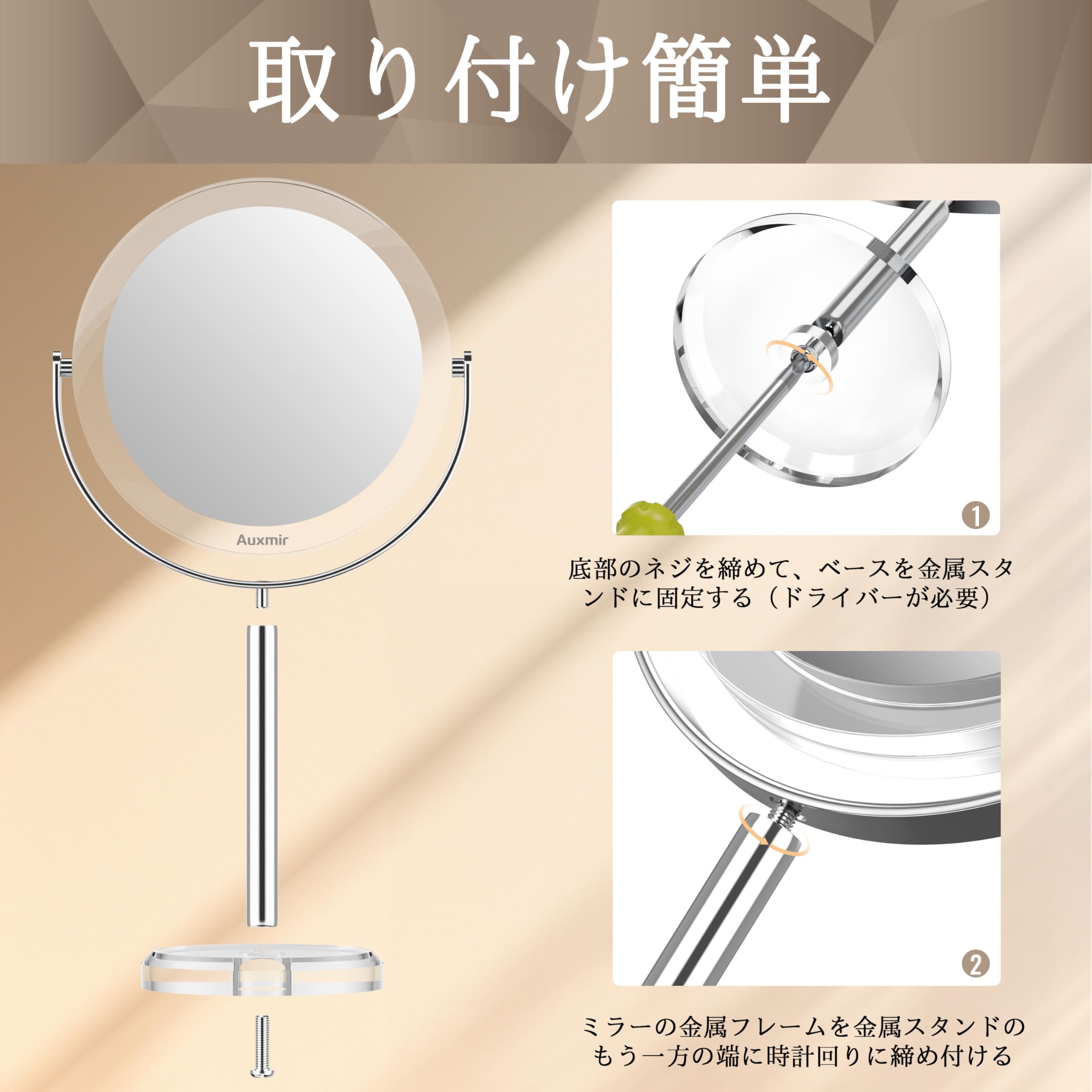 【ギフト・3年安心】高級感やシンプルなデザインのメイクミラーは大切な方へお誕生日プレゼント、バレンタインデイ、クリスマス、ホワイトデー、結婚記念日、母の日、入学式、卒業式など様々なプレゼントに適しています。また、Auxmirはお買い上げ日から3年間のが付いております。新製品に関するご質問やご不明な点がございましたら、ご連絡ください。
