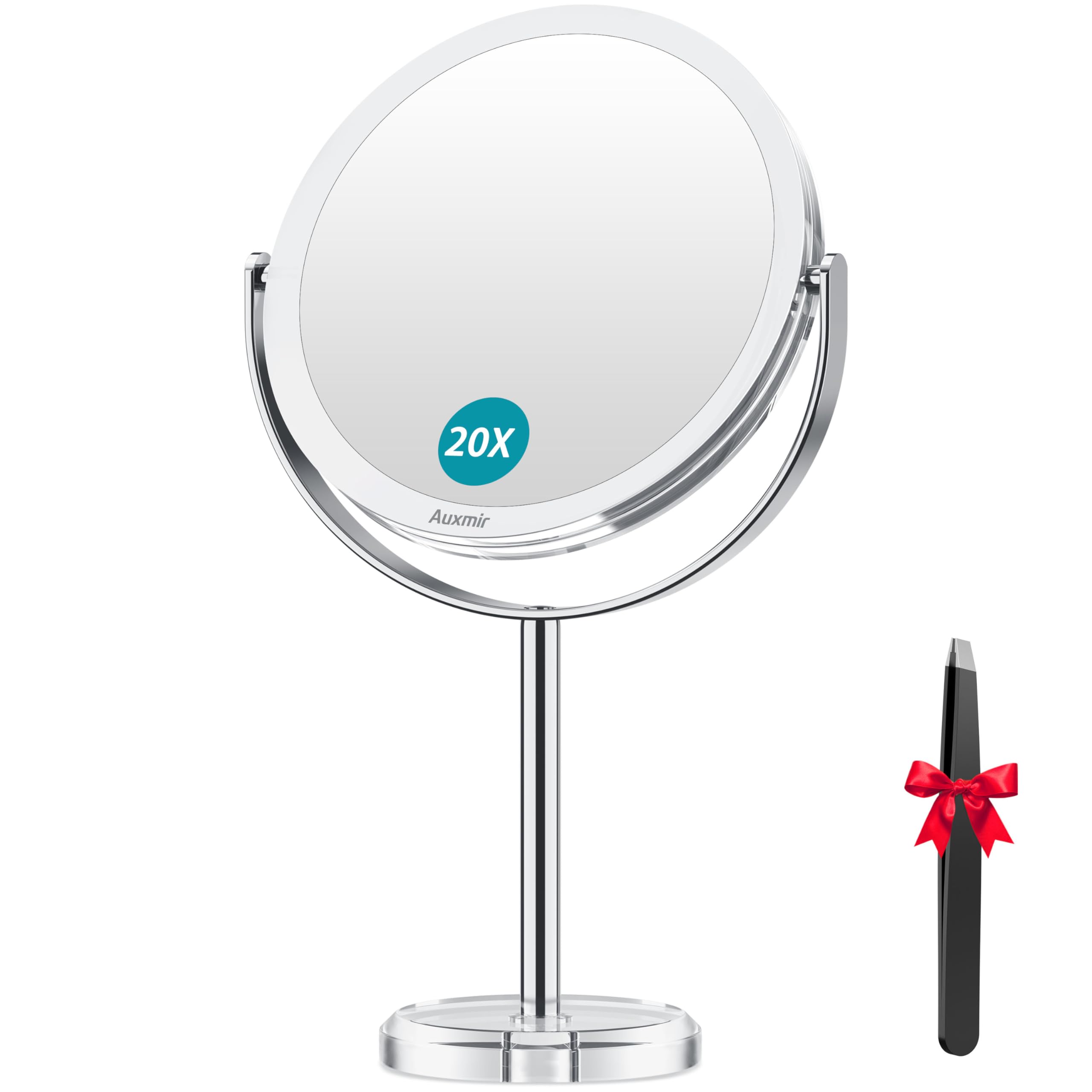 Auxmir 鏡 卓上 化粧鏡 卓上ミラー 20倍拡大鏡 メイクミラー 20倍&等倍両面鏡 卓上鏡 360°回転 スタンドミラー 真実の鏡 円形 旅行 取り付けやすい 人気プレゼント