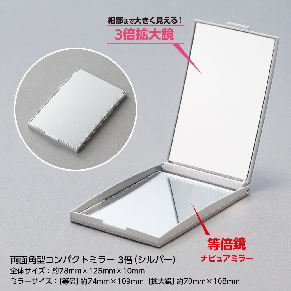 ナピュアミラー 細部が大きく見える 両面角型コンパクトミラー シルバー 3倍拡大鏡 化粧鏡 手鏡 敬老の日 ギフト