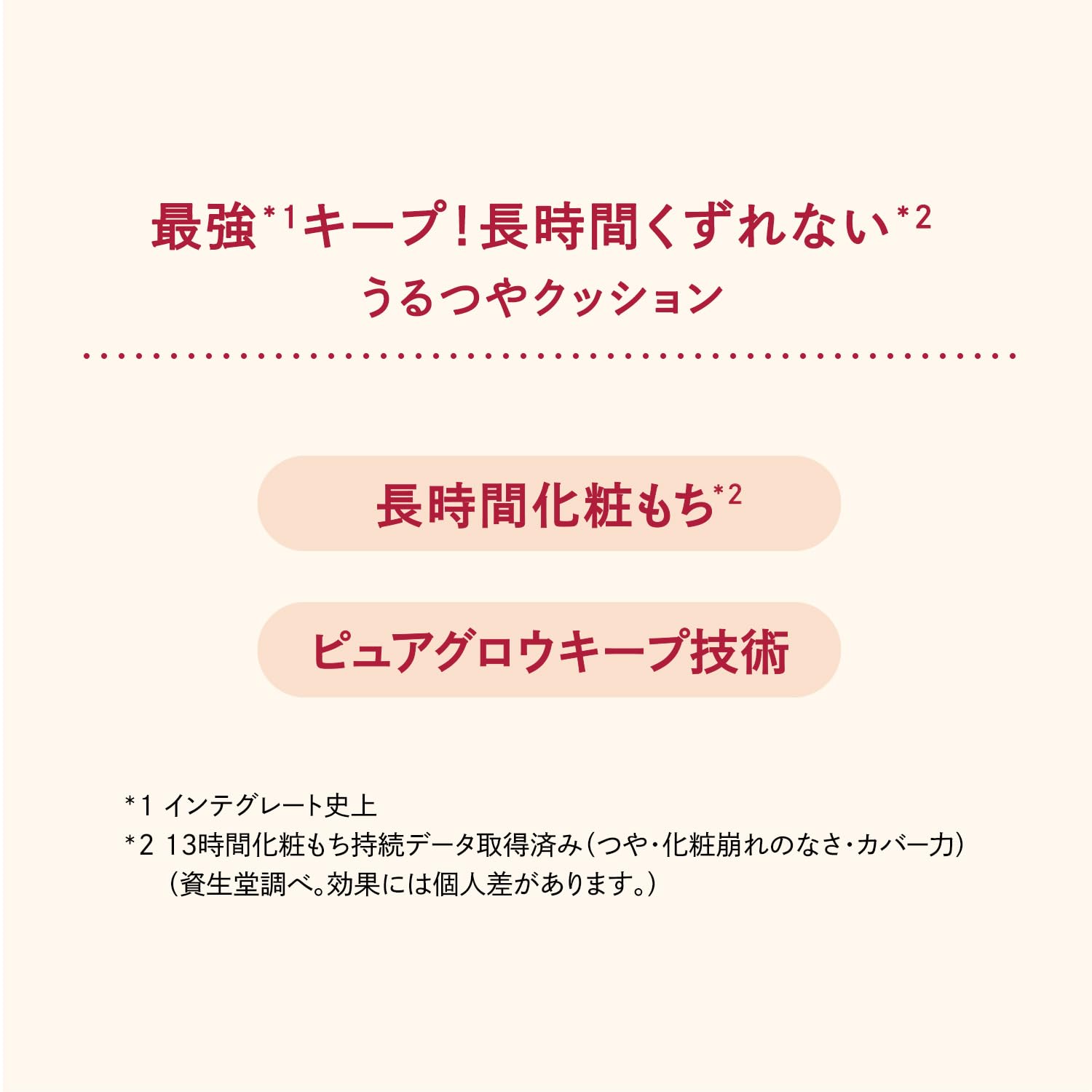 開封時、手を切らないようご注意ください。 パウチ開封直後はパフの匂いを強く感じることがありますが、開放環境に放置することで時間とともに匂いは弱くなります。 スムーズに開閉できなくなった場合は、新しい商品をお求めください。 パフにファンデーションがとれにくくなったときは、クッションスポンジの奥まで押してください。それでもとれにくい場合は、使い終わりの合図です。 目に入ったときは、すぐに洗い流してください。乾燥を防ぐため、ご使用後は必ずレフィルとコンパクトケースのふたをきちんと閉めてください。 ご使用後は、パフに残ったファンデーションをティッシュなどで軽く拭き取ってください。 製品特性上、シール、クッション面のまわりや中ふたなどに液体が付着する場合がありますが、仕上がりに問題ありません。きれいに拭き取ってからお使いください。 エモリエント成分が染みだすことがありますが、品質上問題ありません。 落下などの衝撃により中味が中ふたに付着したり、レフィルがコンパクトから外れやすくなる場合がありますのでご注意ください。 パフが汚れるとつきにくくなりますので、いつも清潔にしてお使いください。 パフが汚れたときは、別売りの「資生堂 スポンジクリーナーN」をお使いいただくか、中性洗剤をぬるま湯に薄くとかして軽く押し洗いをします。洗剤が残らないように十分すすいだ後、水気をきり、日かげでよく乾かしてからお使いください。 日のあたるところや高温・多湿のところに置かないでください。 ※商品のSPF表示及びPA表示は、SPF試験法に定められている塗布量1c㎡あたり2mgを皮ふに塗布して測定した結果です。