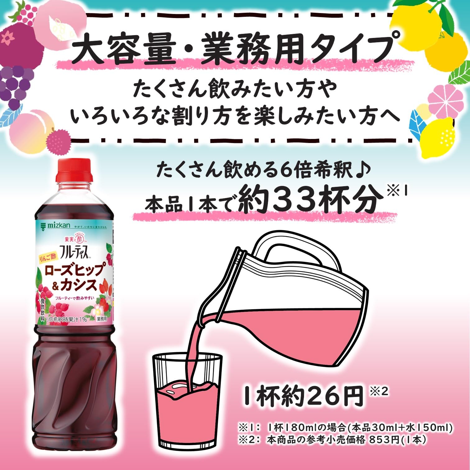 ミツカン 業務用 フルーティス りんご酢 ローズヒップ&カシス 1000ml×2本(6倍濃縮タイプ)飲むお酢