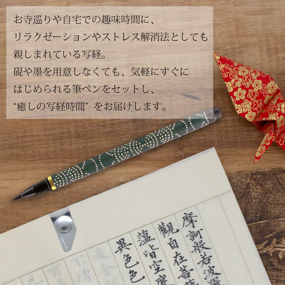あかしや 写経セット 筆ペン 新毛筆 古都 傳 深緑 AZ-17SAWD-8