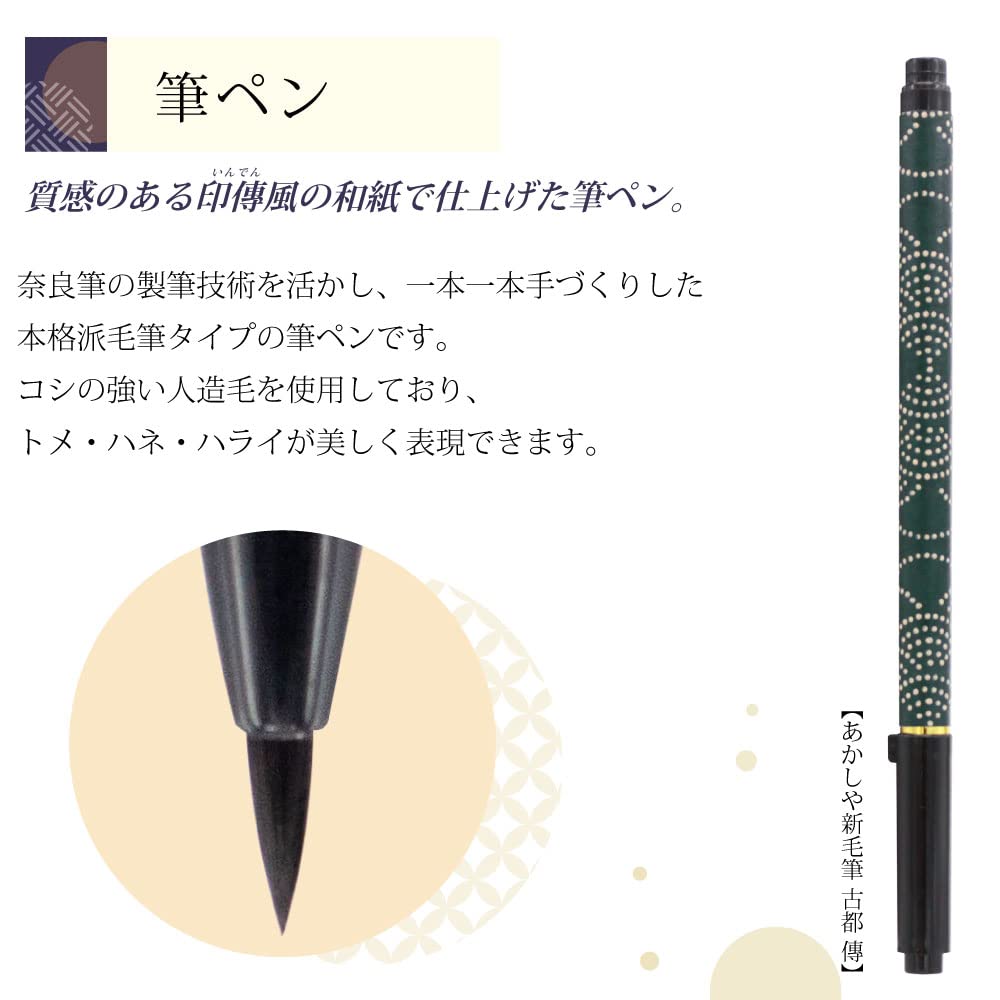 【数量限り】あかしや 写経セット 筆ペン 新毛筆 古都 傳 深緑 AZ-17SAWD-8