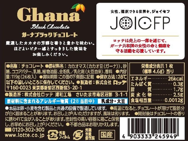 ロッテ ガーナブラックエクセレント 119g(26枚入)
