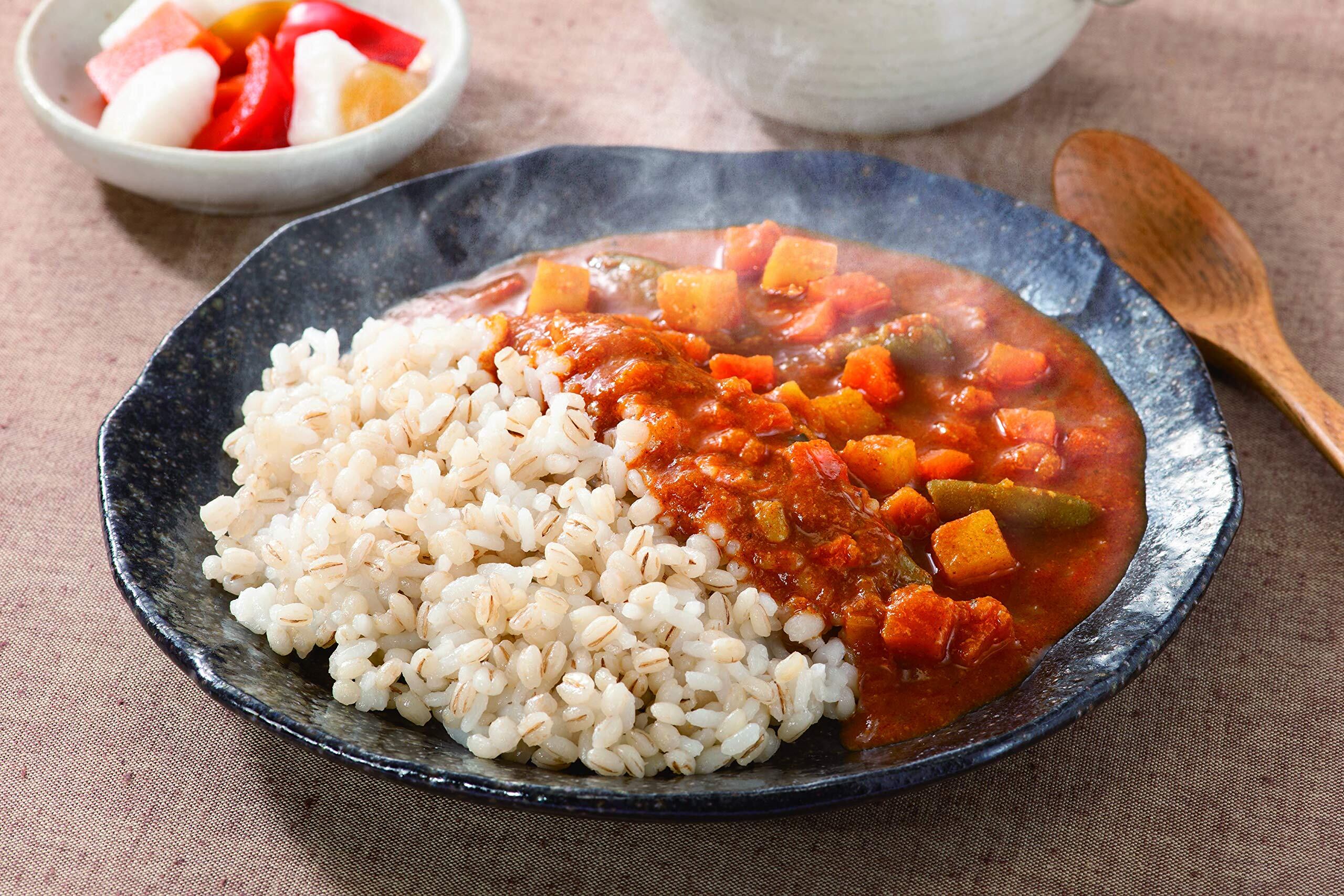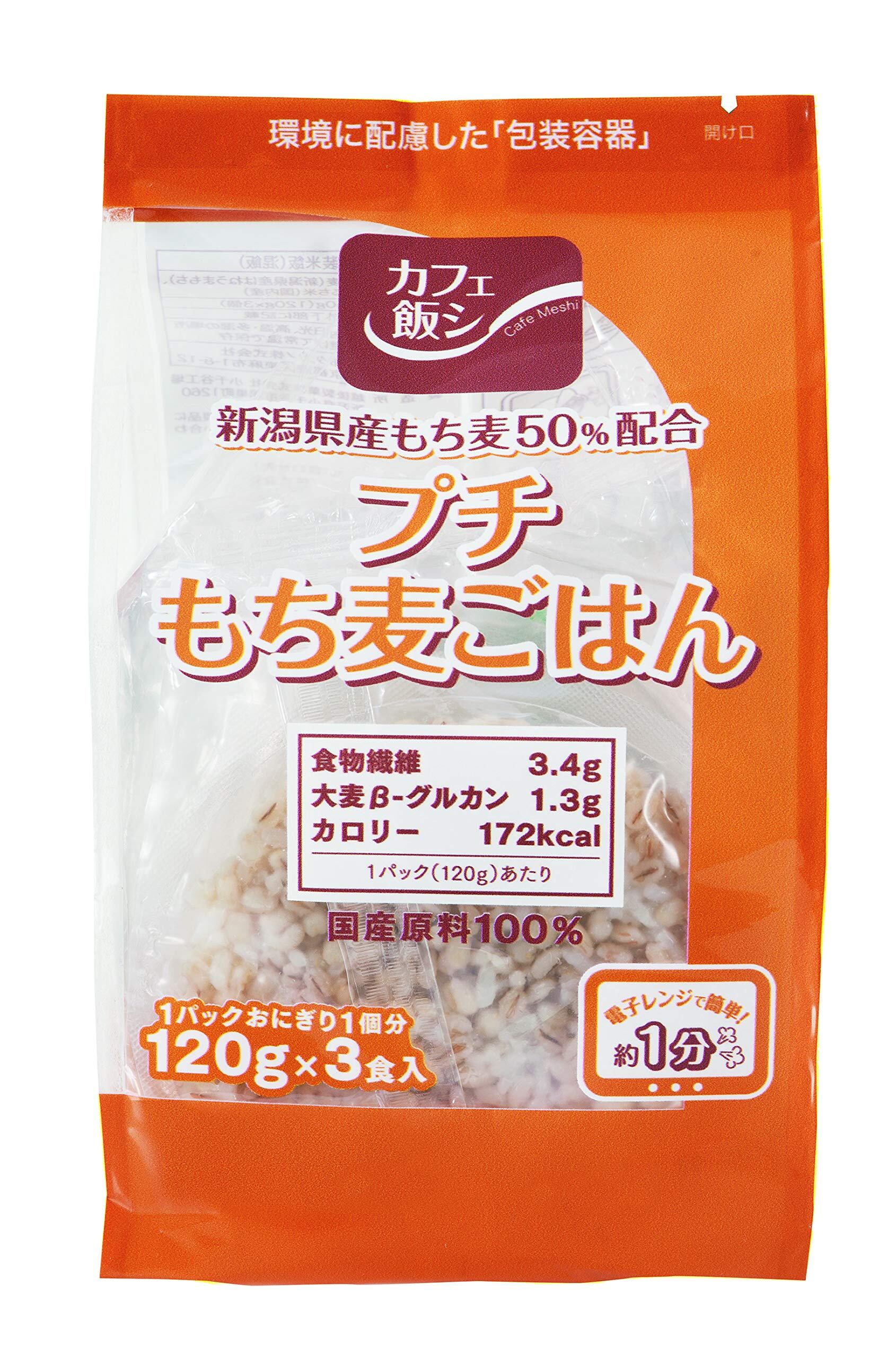 もち麦をたっぷり50%配合した、ぷちぷち食感が楽しいもち麦ごはんです。新潟県産もち麦「はねうまもち」、国内産うるち米を使用し、国産原料100%で作りました。レンジで1分の加熱でお召し上がりいただけます。不足しがちな食物繊維も、手軽にとることができます。包装米飯業界初のフィルム包装で、容器資材を軽量化した、環境にも配慮した商品です。