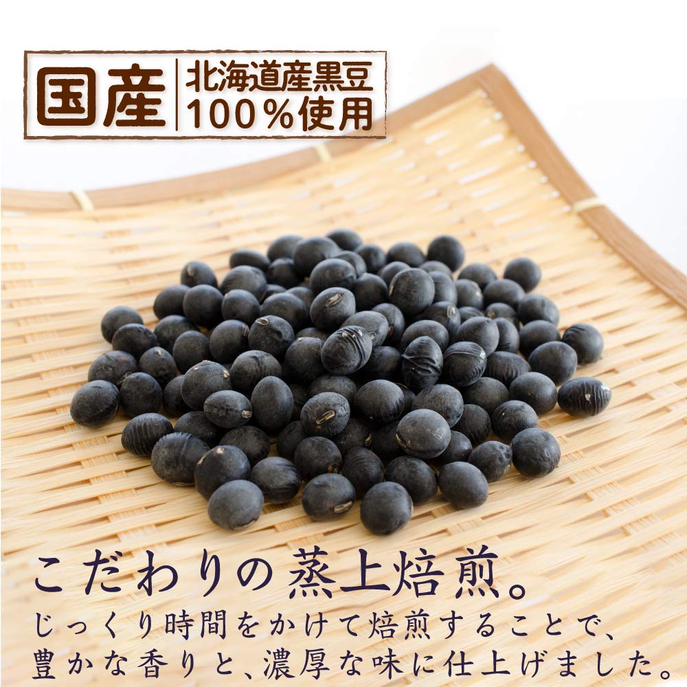 ??大地の恵みがギュッと詰まった北海道産の黒豆を使用。じっくり時間をかけて焙煎することで芯まで火を入れ、濃厚な味わいに仕上げました。 カップ(湯呑)にお口をつけた瞬間にどこか懐かしく、優しい黒豆の芳醇で豊かな香りが鼻を抜けていきます。