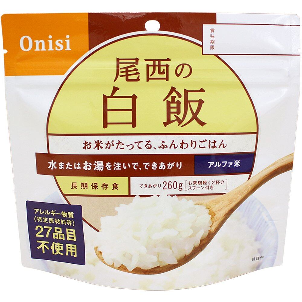 アルファ米 白飯100g×5食 内容量:100g×5食 商品サイズ(高さx奥行x幅):50mmx215mmx300mm 国産のうるち米だけを使用しています。お米が立ってるふっくらご飯をお楽しみください。スプーン付きだから、何処ででもお召し上がりいただけます。でき上がりの量は、市販のおにぎり(約100g)2.5個分ぐらいのご飯です。ちょっと大盛り、260gのでき上がり量! 原材料・成分 うるち米(国産)