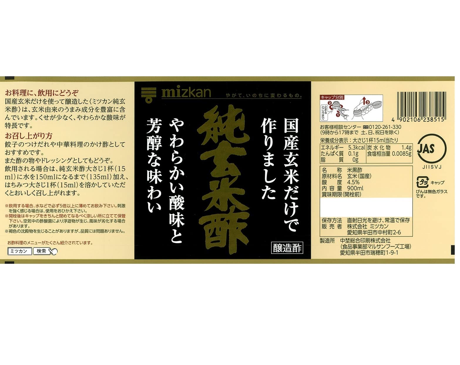 ミツカン 純玄米酢 900ml