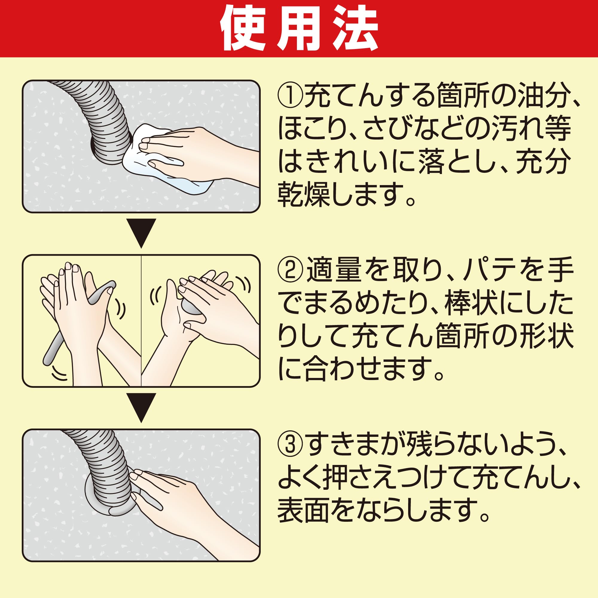 用途:クーラー配管の壁穴・流し台の排水管の取付穴の隙間等の充てん