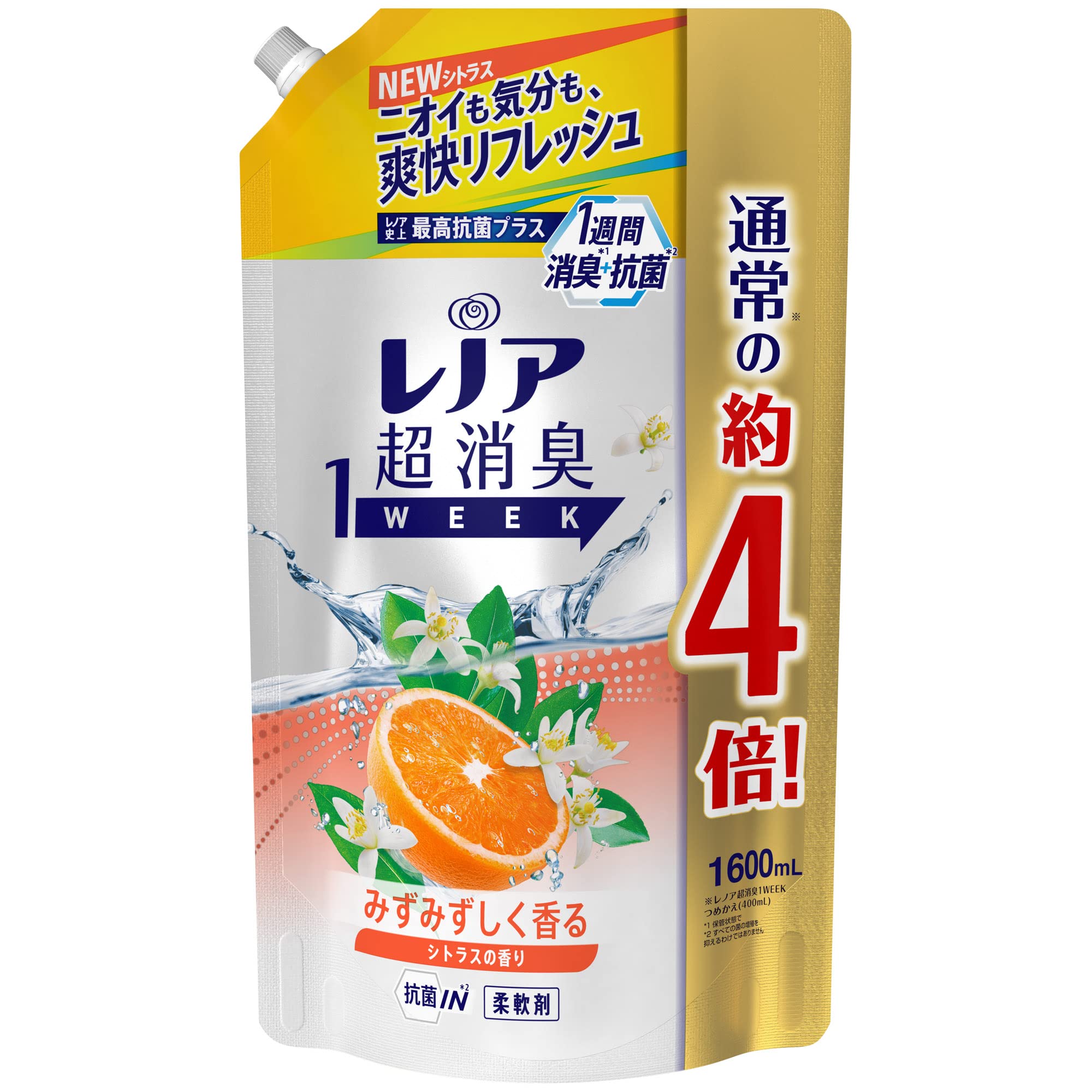 レノア 超消臭1week 柔軟剤 シトラス 詰め替え 1,600mL