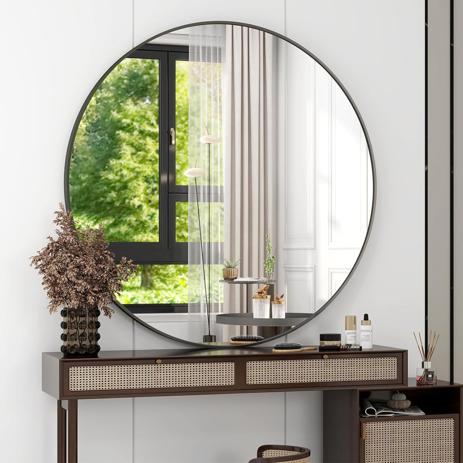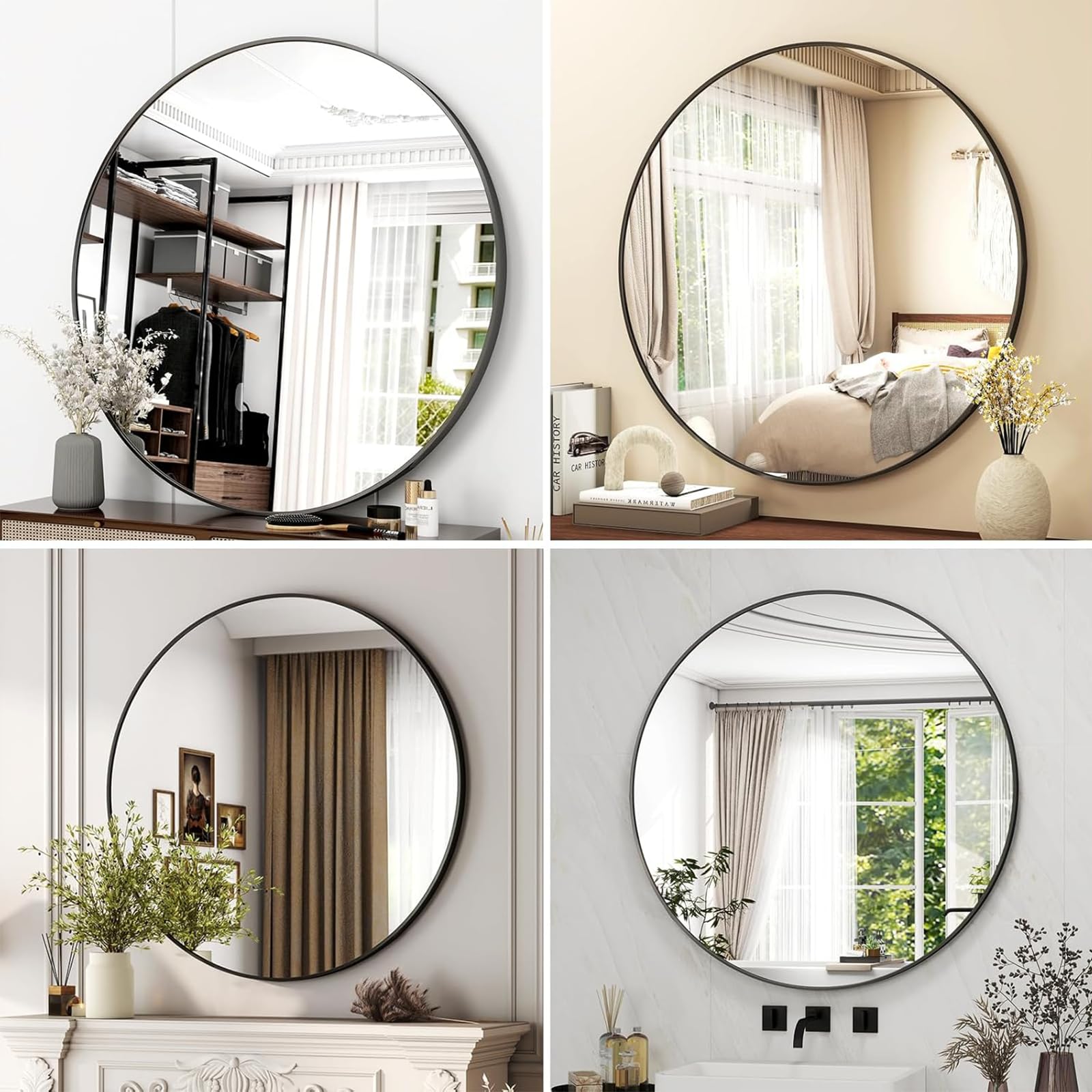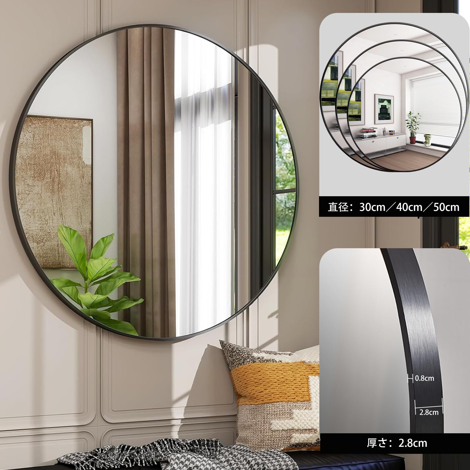 【努力特価】Genjitsu 鏡 壁掛けミラー 丸鏡 壁掛け鏡 洗面台 鏡 壁 洗面鏡 浴室 玄関 洗面所 鏡 化粧鏡 かがみ 円形 鏡 壁掛け 丸(ブラック直径30cm)