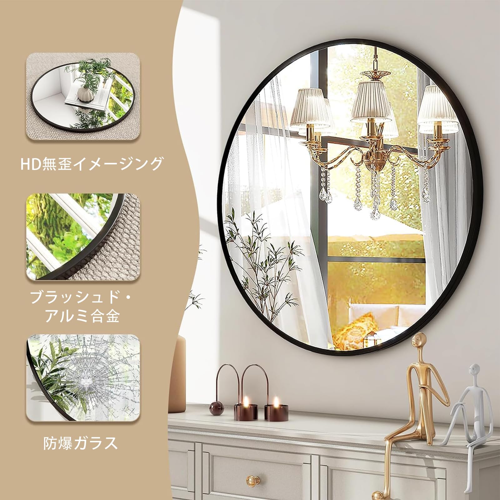 ?【品質・手厚いサポート】Genjitsu アルミ合金製の鏡 壁掛け 丸 は180日間ため安心してご使用いただけます。商品の品質には万全を期しておりますが、万が一不具合の場合、交換または返品を迅速にさせていただきます