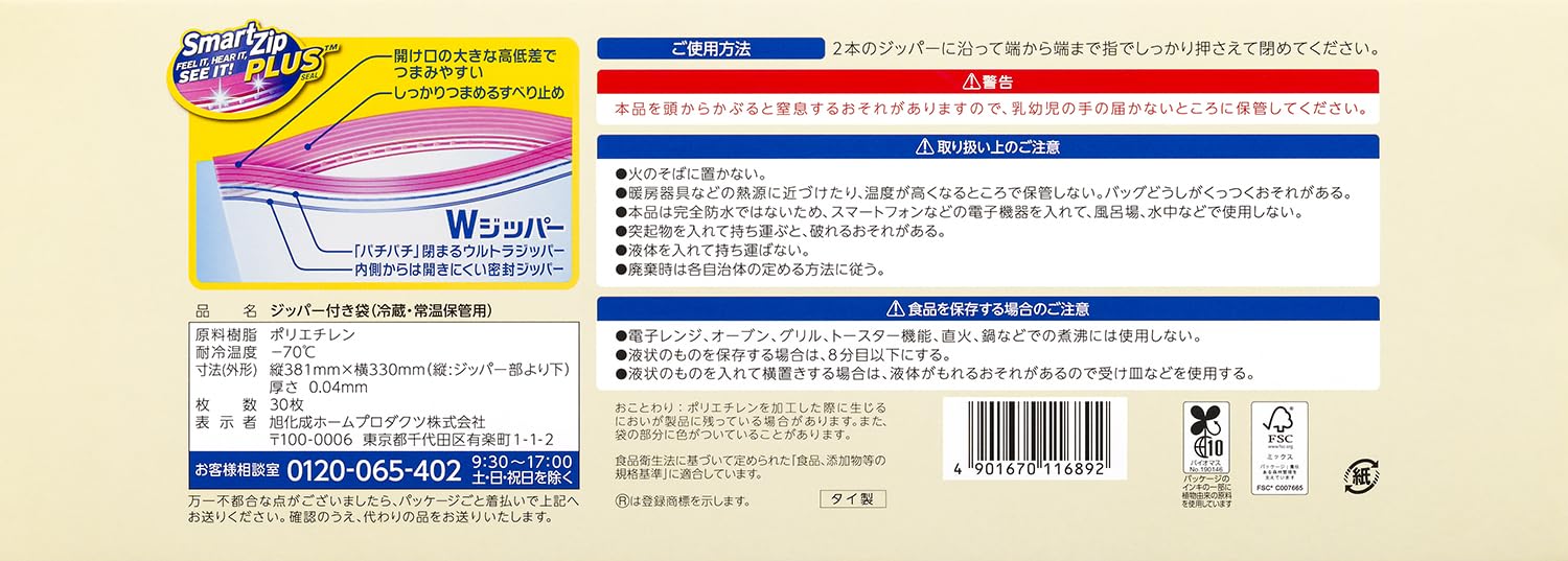 ●<袋サイズ> 縦381mm×横330mm 厚さ0.04mm(縦:ジッパー部より下)