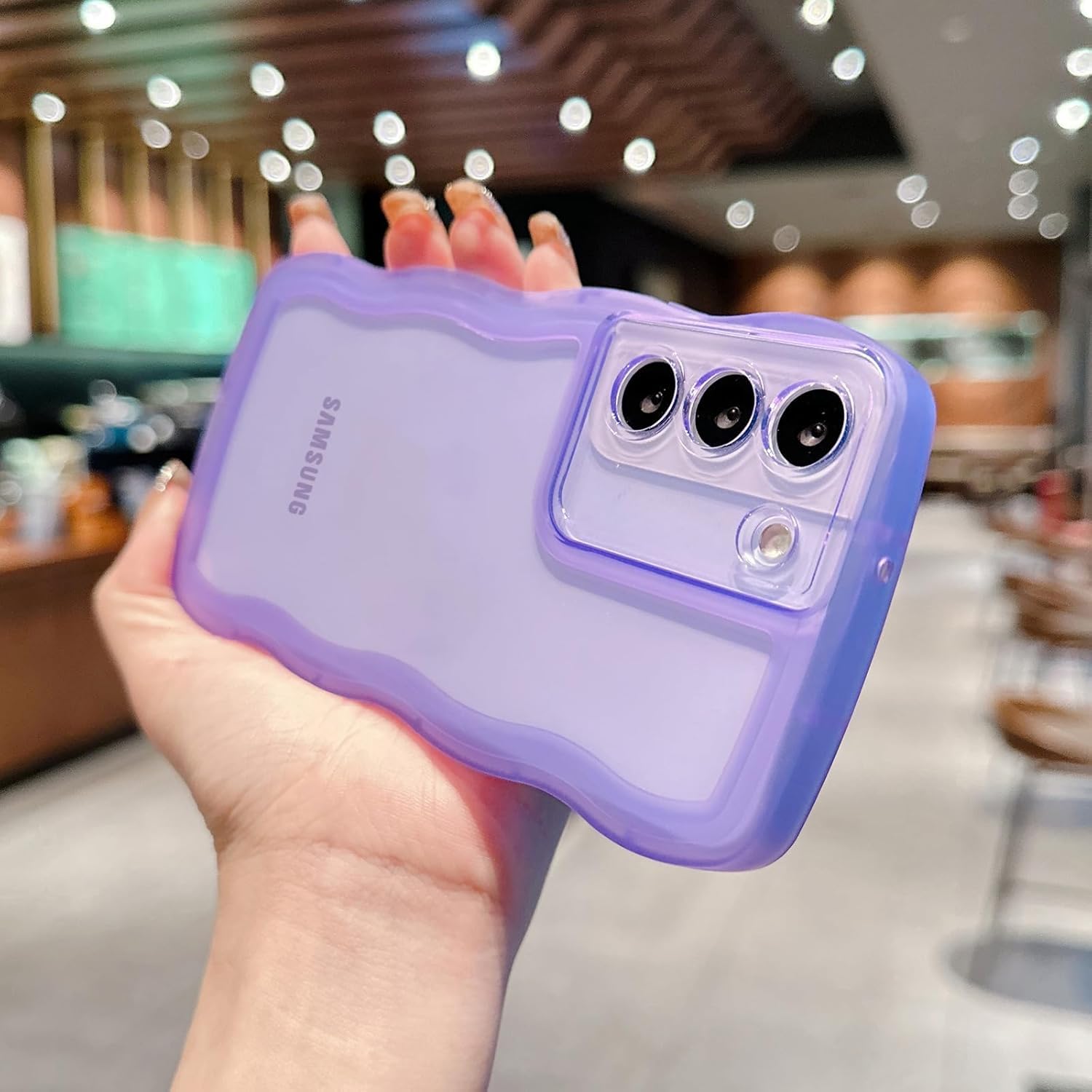 【在庫のみ】QLTYPRI Galaxy A53 5G ケース クリア TPU カバー ウェーブ おしゃれ 韓国 可愛い 透明 薄型 軽量 耐衝撃 滑り止め (SC-53C / SCG15) スマホケース ワイヤレス充電対応 ストラップホール付き ギャラクシーA53 ケース 6.5インチ 対応 - パープル