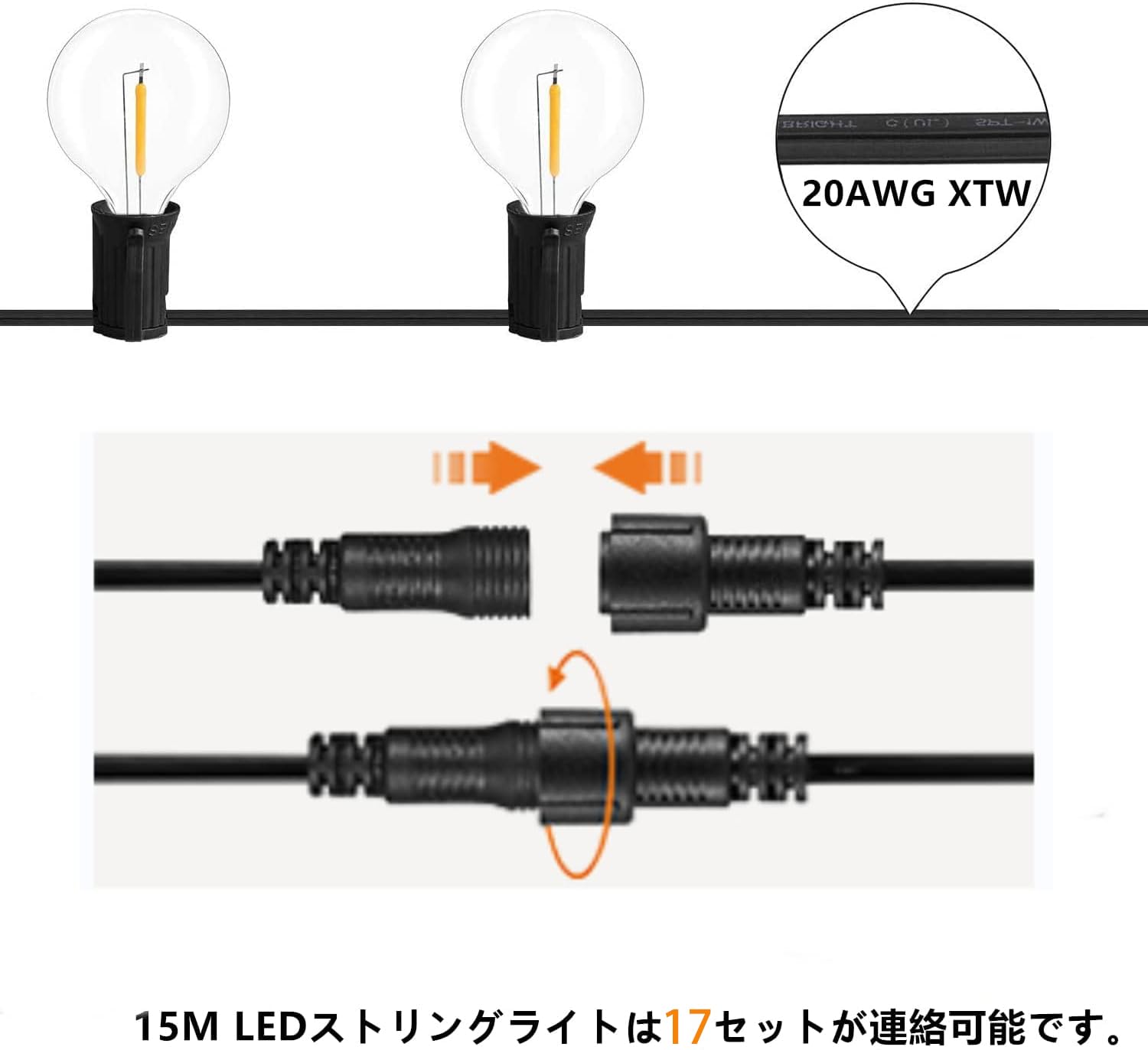 防雨型LEDストリングライト 15M 25個LED電球付き E12口金 2700K電球色 PC素材 破損しにくい 連結可能 LEDイルミネーションライト屋内/屋外照明 ガーデンライト クリスマス イルミネーション 装飾ライト誕生日パーティー電飾 結婚式飾り