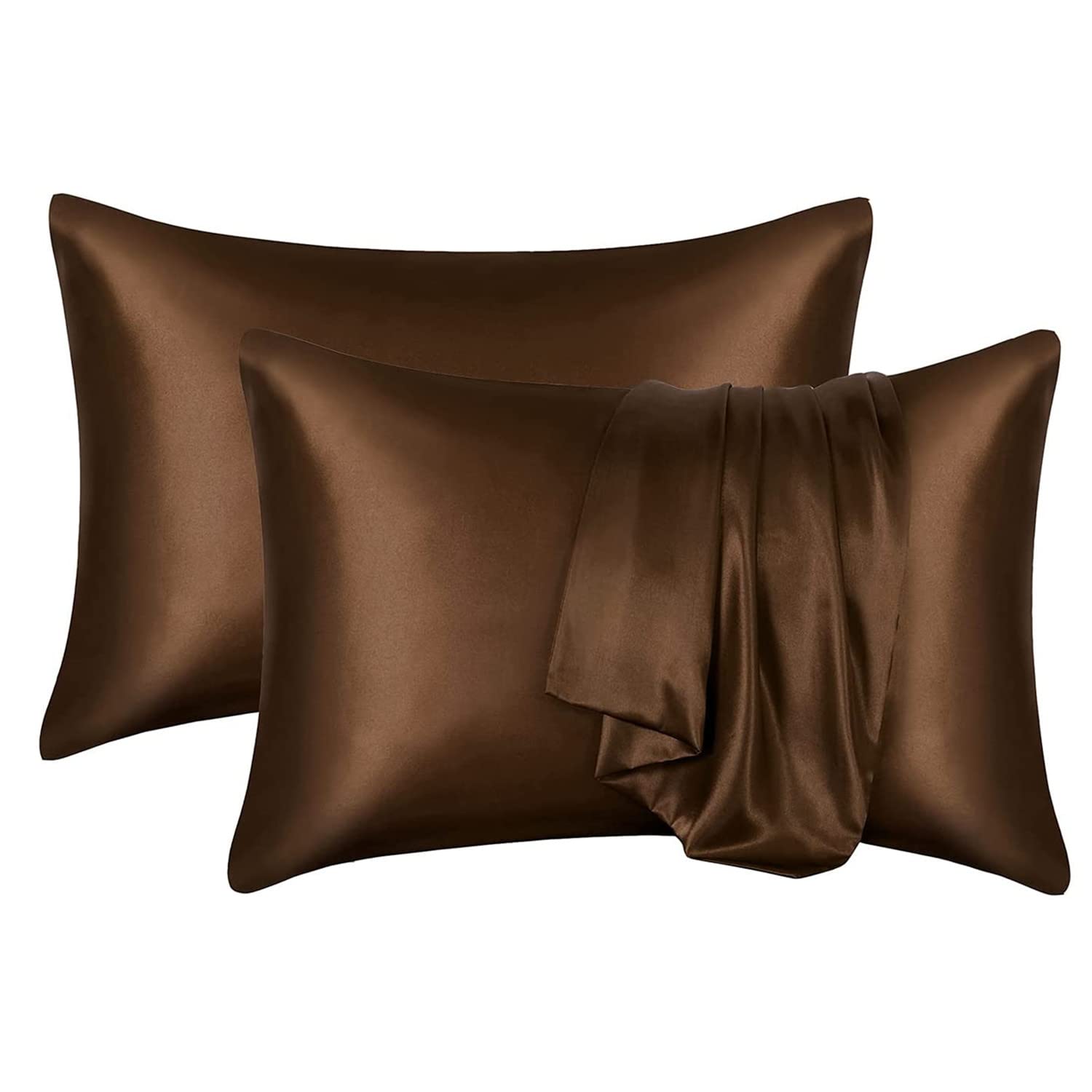 枕カバー 2枚セット サテンの枕カバー 封筒式ピローケース 美肌 美髪 両面シルクタイプ 滑らかな材質 静電気防止 (43*63 ブラウン)