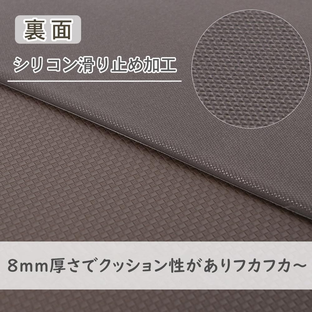 キッチンマット 拭ける 洗濯いらず 低反発 クッション 8mm 踏み心地いい ポリ塩化ビニール ずれない 台所 マット はっ水 防汚 180cm ブラウン