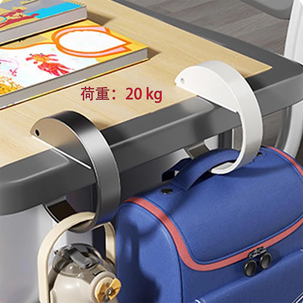 バッグハンガー テーブルフック カバン フック 鞄掛け 耐荷重20㎏ 持ち運び便利 滑り止め付 多機能 高強度合金素材製 粘着テープなし C字設計 ホワイト(2個セット)