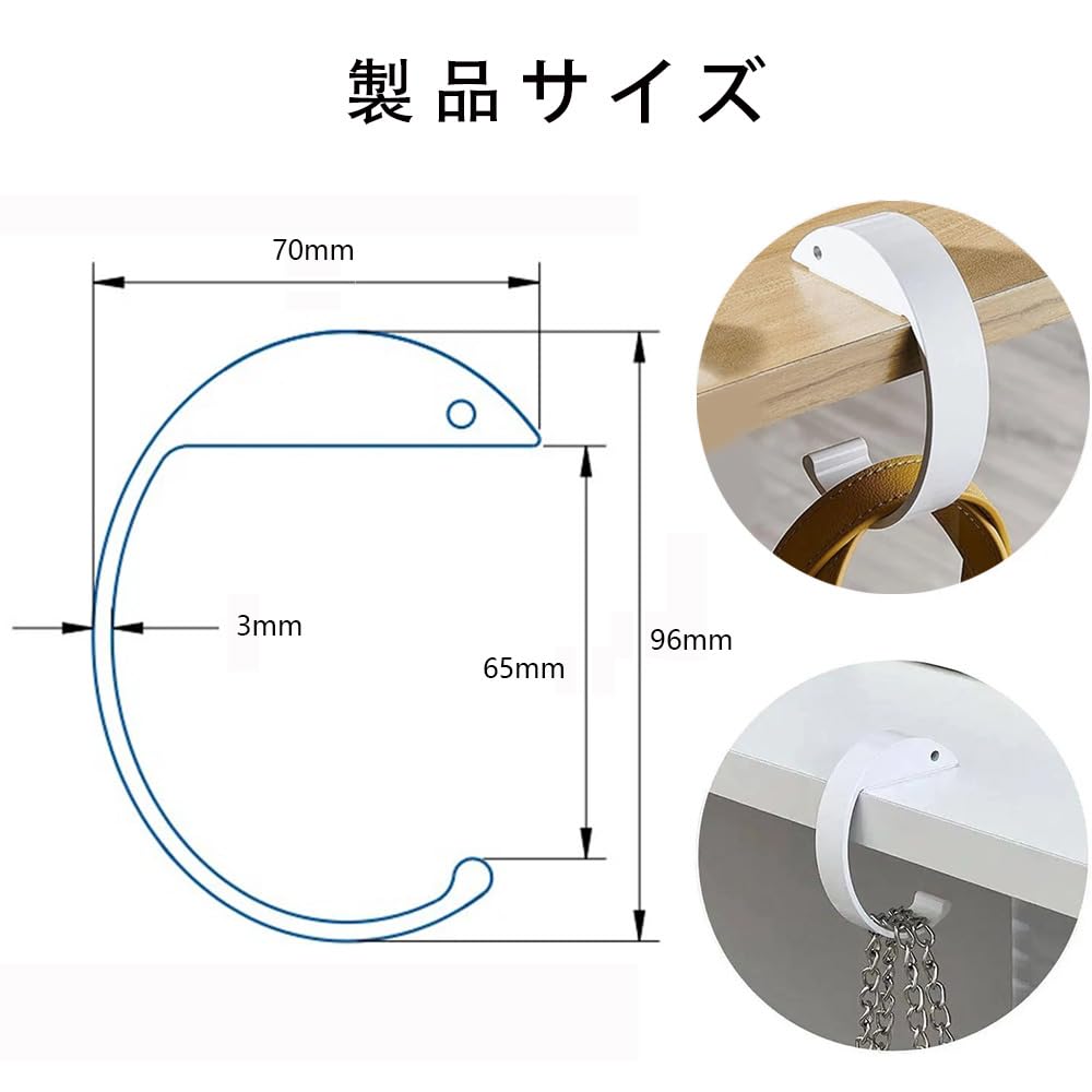 【デザイン】C型デザインにより、テーブルフックによる傷を防ぎます。黒と白のデザインは、場違いに見えることなく、あらゆる色やスタイルの家具にマッチします。気に入ったバッグをかける事ができる便利グッズです。しっかりとした作りできちんとバッグをかけれます。