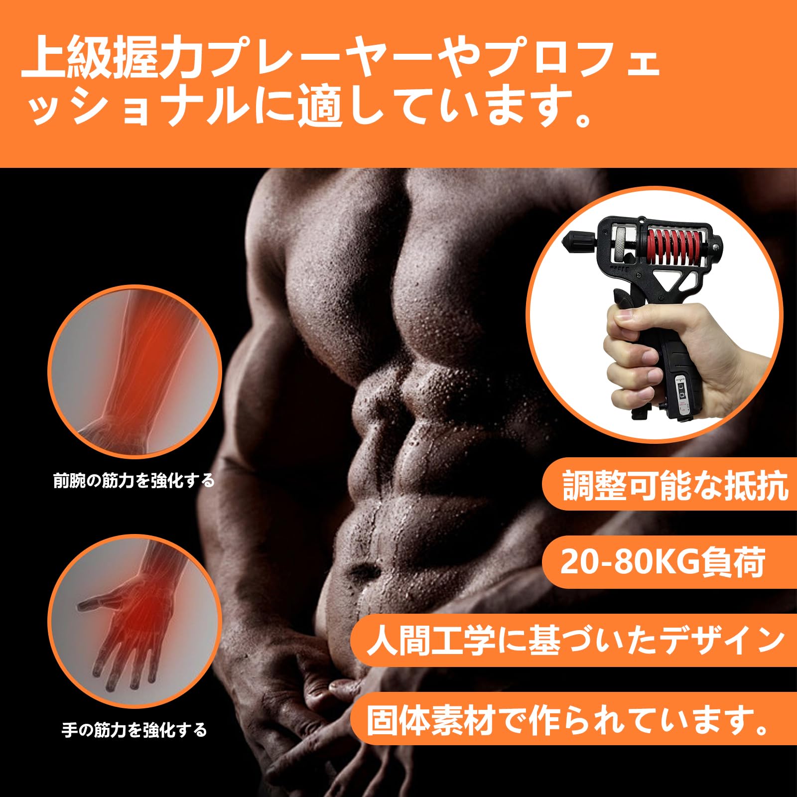 【数量限り】握力 トレーニング ハンドグリップ 筋トレグッズ 5-165kg カウンター付き 負荷調整可能 グリッパーの 新モデル 男女兼用 インクブラック